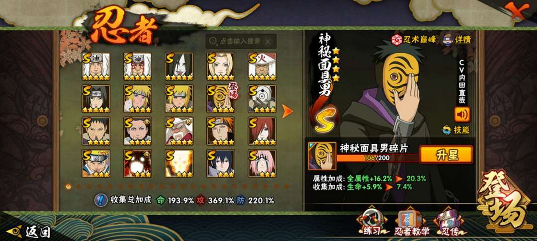 全忍者,50多个s 100A忍 400多忍者 4000万战力 高属攻