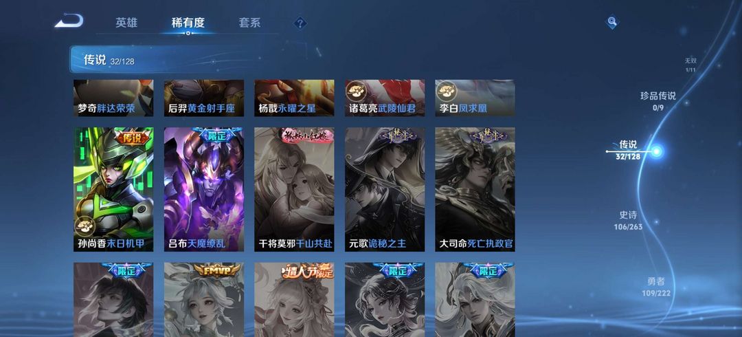 【非沄直接上号】极品V10★三历史国标★430皮★六典藏★诸葛亮新典藏★虎年五限定★鸣剑戈影★活力突击️★多限定