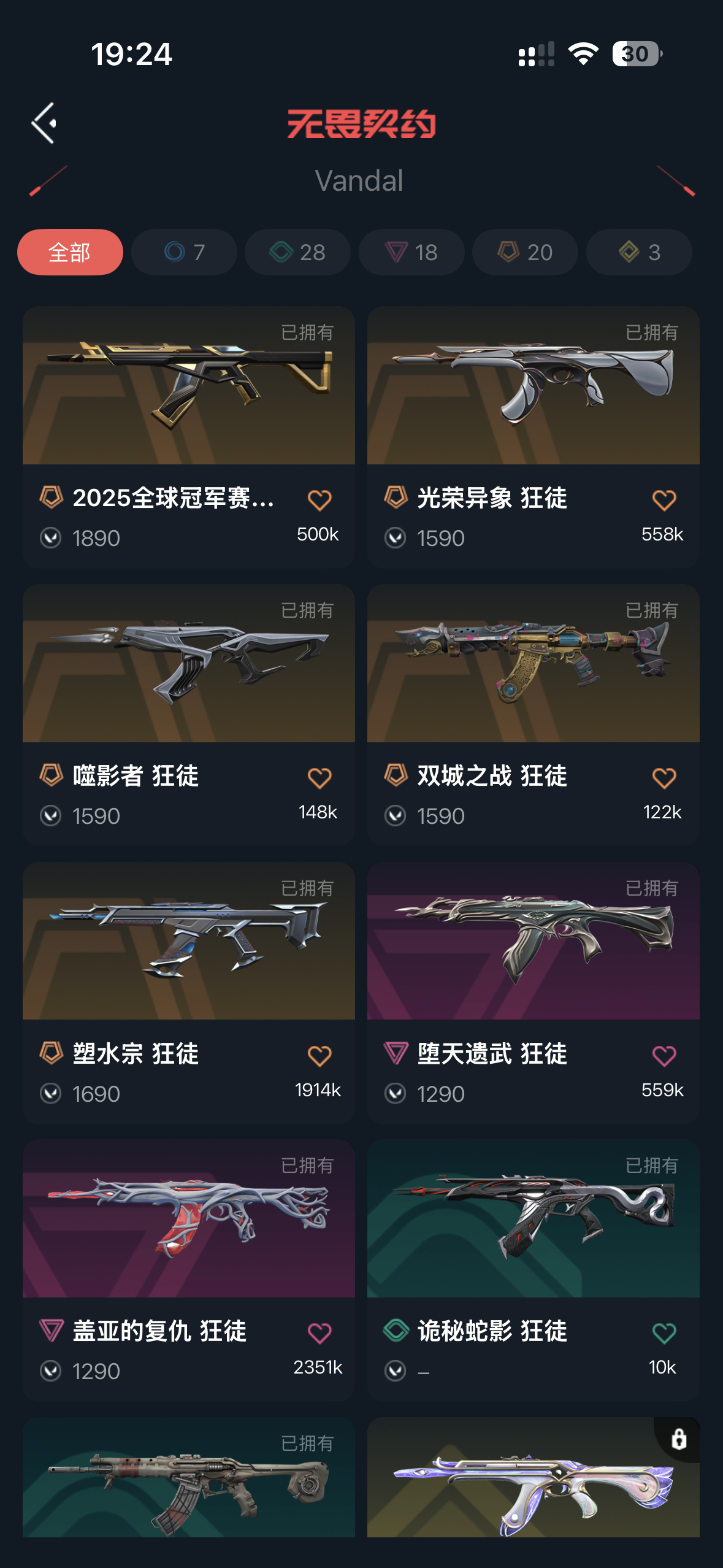 允许 英雄27 武器皮肤数量80;西部未来 奥丁,紫金爪刀,盖亚的复仇 狂徒,噬影者 狂徒,侦察力量 幻影,堕天遗武 狂徒,塑水宗 狂徒,