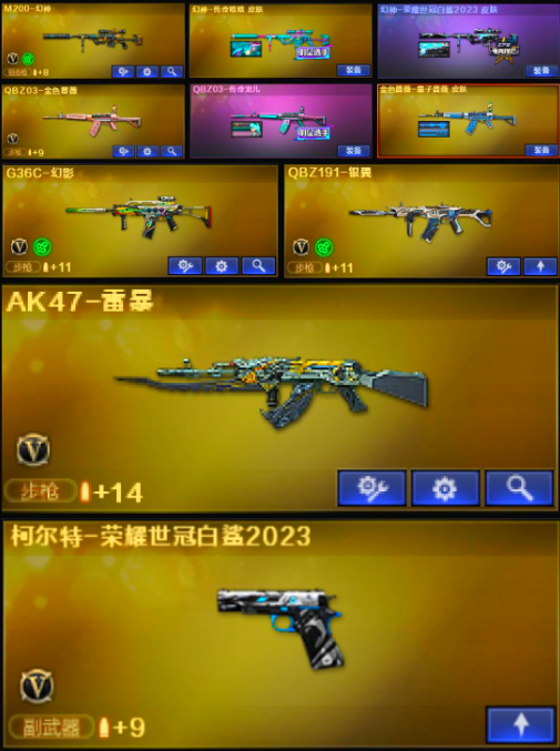 【东部】90v幻神欧欧+白鲨2023✅Qbz宠儿✅G36c幻影✅4把精品副手✅6烈双全装;USP-雷暴,柯尔特-荣耀世冠白鲨2023,QBZ03-金色蔷薇,G36C-幻影,M200-幻神,
