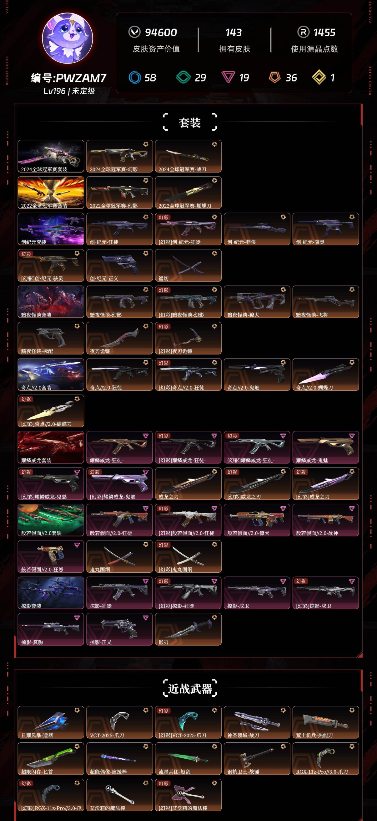 【拥有套装】2022全球冠军赛套装(2022全球冠军赛-幻影,2022全球冠军赛-蝴蝶刀)创纪元套装(创·纪元-狂徒,创·纪元-莽侠,创·纪元-骇灵,创·纪元-正义,镭切)黯夜怪谈套装(黯夜怪谈-幻影,黯夜怪谈-獠犬,黯夜怪谈-飞将,黯夜怪谈-标配,夜刃诡镰)奇点2.0套装(奇点//2.0-狂徒,奇点//2.0-鬼魅,奇点//2.0-蝴蝶刀)般若假面2.0套装(般若假面//2.0-狂徒,般若假面//2.0-獠犬,般若假面//2.0-战神,般若假面//2.0-狂怒,鬼丸国纲)2024全球冠军赛套装(2024全球冠军赛-幻影,2024全球冠军赛-战刀)耀鳞威龙套装(耀鳞威龙-狂徒,耀鳞威龙-鬼魅,威龙之刃)掠影套装(掠影-狂徒,掠影-冥驹,掠影-戍卫,掠影-正义,影刃)