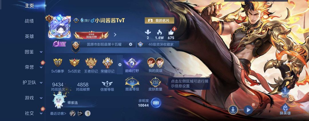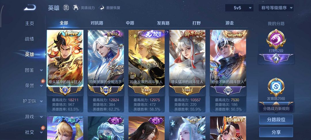 ⭐历史1.8w数字标3老虎⭐老虎MVP新皮⭐小国李白1.2w战力⭐59段打野⭐野王男神号⭐禁巅峰