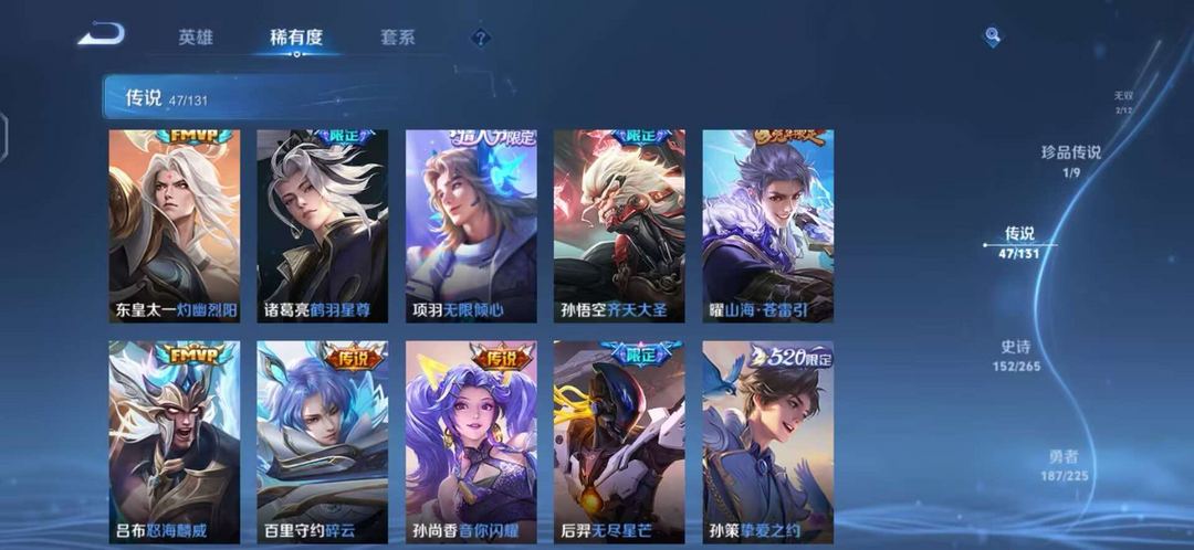 女生号 贵10 多皮肤多传说 别拿那些空号v10来比 要看性价比 貂蝉武则天夏侯惇孙悟空李白鲁班小乔荣耀水晶 妲己九尾无双皮肤 80个传说 473皮肤