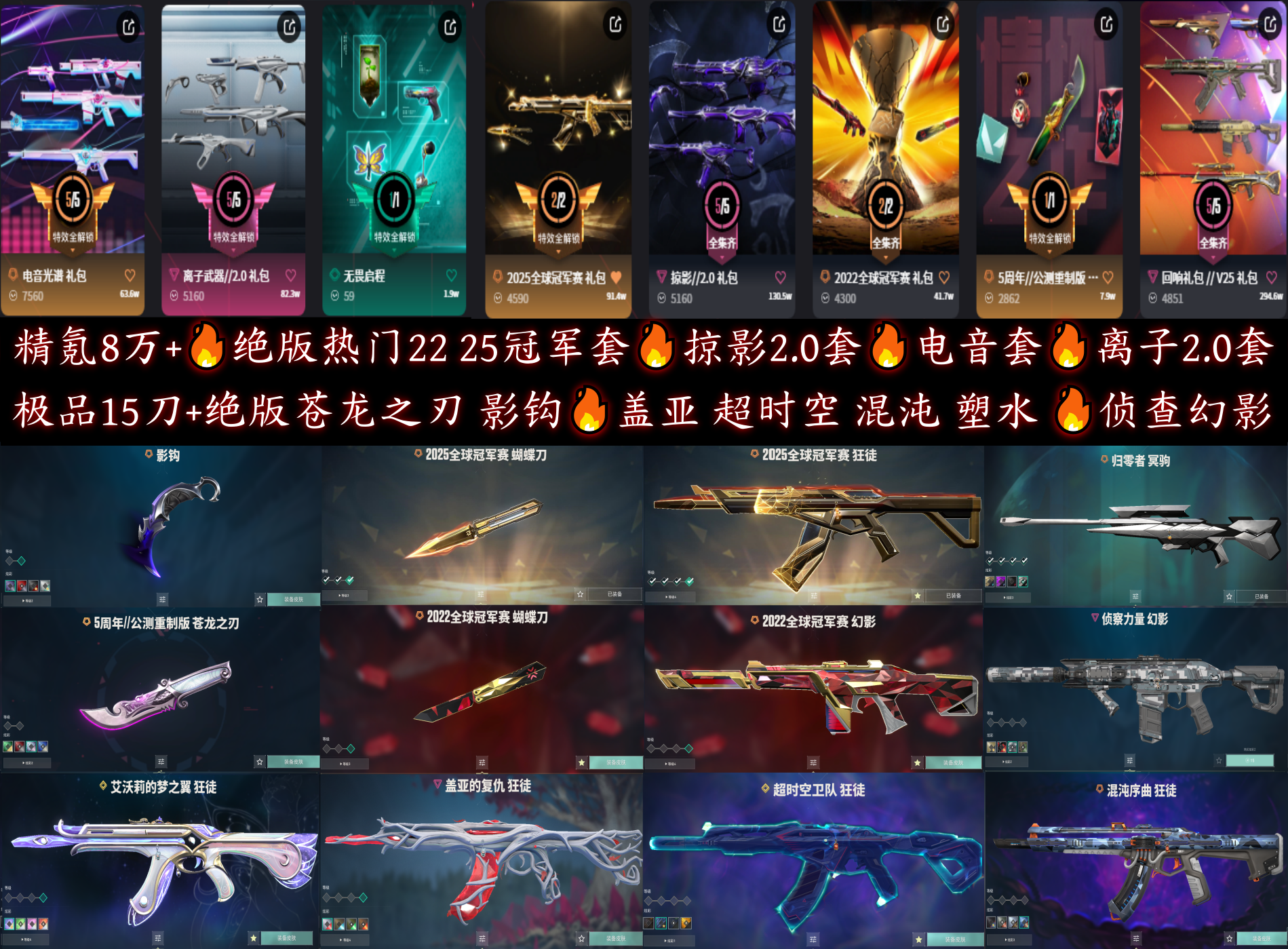 8万精氪22套25冠军掠影2.0五套⚡特效拉满绝版苍龙刃⚡影钩⚡盖亚⚡超时空⚡艾沃莉⚡混沌⚡侦查幻影