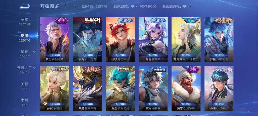 无双贵族V10♥739皮♥诸葛亮天机白泽♥死神系列黑崎一护,朽木白哉♥貂蝉繁花慕夏,全屏天幕♥千劫归真♥请先看最后一张图找客服♥不卡非☁♥166横行霸道
