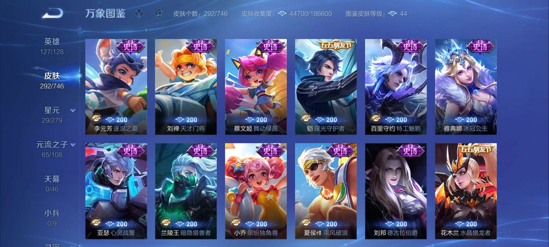 历史❤️三国服❤️,打野精品号❤️292皮肤❤️,❤️曜无双❤️李白典藏❤️限定19❤️传说86❤️