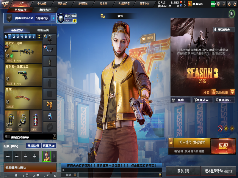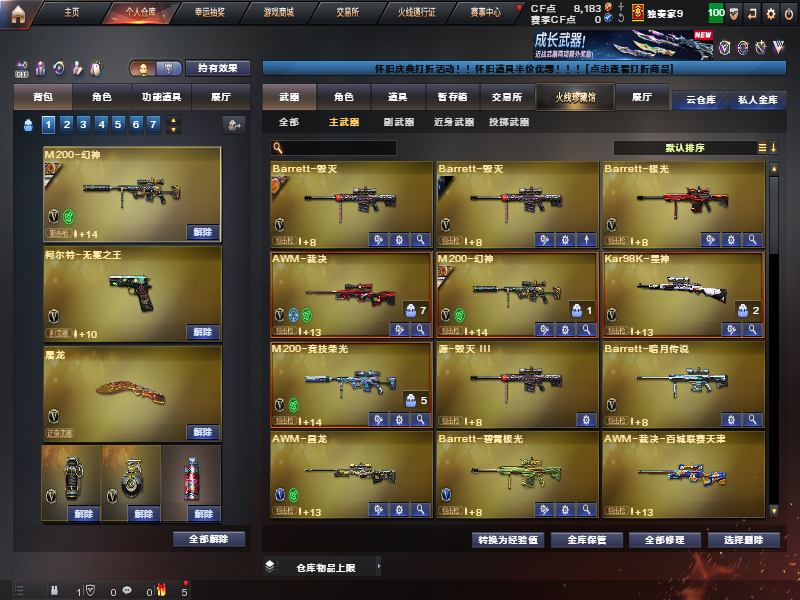精品爆破号,4个4防角色,手枪天花板,幻神带卡带heartshot皮s24ag皮,白虎白鲨皮,火麒麟heartshot皮肤,竞技荣光全套,雷霆王者投掷套,幻灵投掷套,雷暴投掷套 禁止挂机! 禁止中途退出! 禁止言语辱骂!;柯尔特-无冕之王,USP-雷暴王者,隼,电竞教官-云悠悠,晴雅,QBZ03-金色蔷薇,M200-幻神,