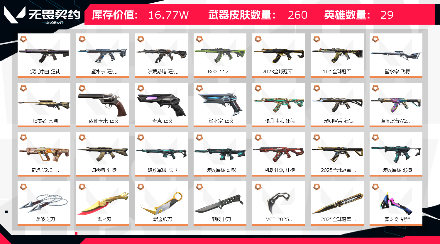 • 皮肤资产价值: 167710
