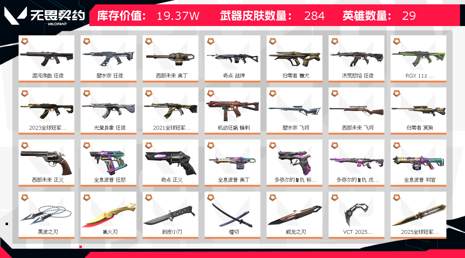 • 武器皮肤数量: 284
