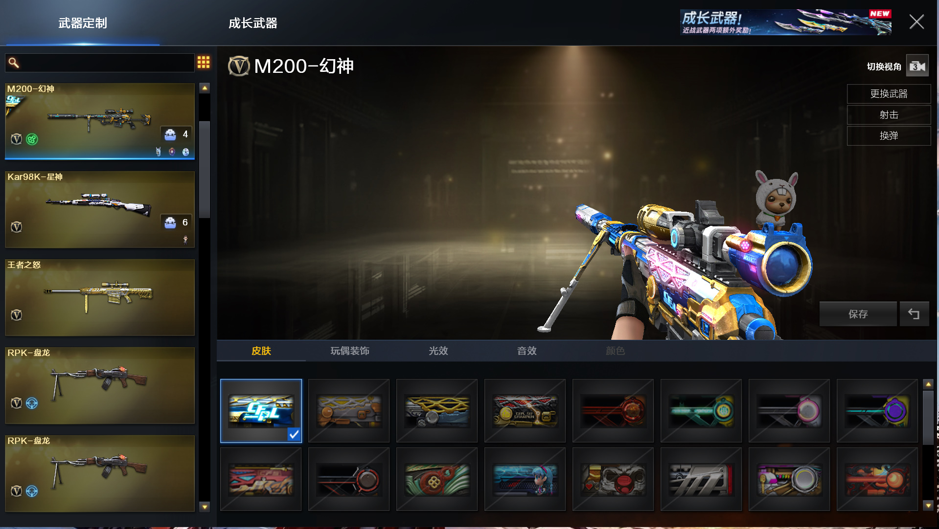 幻神白虎音效卡/幻神冠军之幻白虎某牙星神蔷薇世冠套4烈2盘2炼狱;荣耀世冠-柯尔特,RPK-盘龙,QBZ03-金色蔷薇,M200-幻神,Scar Light-白虎,Kar98K-星神,