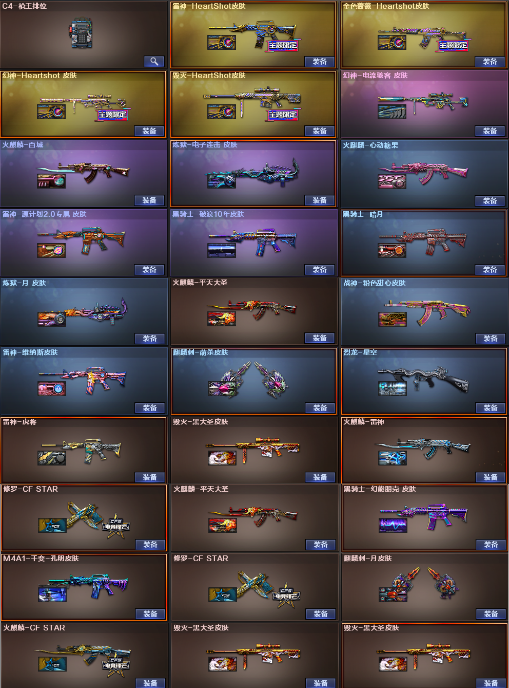 爆破性价比✅传说暗裔辉光✅幻神HS电流骇客2皮✅QBZ金色蔷薇HS皮✅四防云悠悠晴雅✅雷神5皮✅火麒麟5皮 稀有武器:传说暗裔、传说辉光、M200幻神、QBZ金色蔷薇、Barrett电竞装甲、王者龙血、王者之怒、王者森决、王者风神、千变X2、火麒麟X2、雷神X3、黑骑士X2、超新星、黑武士锦绣游龙、超新星热带奇洋、烈火动感闪耀、黑骑士海王X2、白虎电玩蓝兔、毁灭X2、极光X2、暗月传说、盘龙、炼狱、炼狱-风暴、烈龙、烈龙云海游龙、A12雷霆、修罗、柯尔特电竞装甲、天神动感闪耀、擎天、麒麟刺、擎天竞技荣光、屠龙动感闪耀、擎天云海游龙、龙啸热带奇洋、龙啸烈火龙威、王者雷影、炫金骑士、裁决-百城联赛天津、雷霆王者之锋、集束激光-超越MAXX2、火狱乱世-超越MAX、冰龙粉碎者白马银枪、机甲撕裂者3、激光毁灭者查阅2、末日审判者3、双面神、AA12擎天柱3、阐释者3X3、巡航者、猫猫手套X2 稀有角色:电竞教官云悠悠(四防:生化背包变更+捕食者之眼+生化觉醒狂暴化+佣兵觉醒无需换弹)、葵、晴雅(四防:减少闪光效果/免疫队友炸弹伤害/减少掉落伤害/副武器自动装弹)、樱、隼、魅影、奇洋探员、乔伊教练、王者葵貂蝉(四防)、王者瞳闭月羞花、王者炽天使(四防)、王者晴雅(四防)、王者岚兮儿(四防)、修道士、云海玲珑、0号玩家、电光少女、电竞少女、芳心审判者 稀有皮肤:幻神Heartshot皮肤/电流骇客皮肤、雷神Heartshot皮肤/源计划2.0专属皮肤/虎将皮肤/维纳斯皮肤/暗月皮肤、QBZ金色蔷薇Heartshot皮肤、毁灭Heartshot皮肤/黑大圣皮肤、火麒麟百城皮肤/心动糖果皮肤/CFstar皮肤/平天大圣皮肤/雷神皮肤、炼狱电子连击皮肤/月皮肤、黑骑士破浪10年皮肤/幻能朋克皮肤/暗月皮肤、麒麟刺萌杀皮肤/月皮肤、烈龙星空皮肤、千变孔明皮肤 投掷套装:电竞装甲套、竞技荣光套、神工天巧套、雷霆王者套、手雷动感闪耀、手雷云海游龙、手雷热带奇洋、音乐手雷、双生雷恶棍、生化手雷-小刚X3 小人枪武器特殊武器:星神炽天使、炼狱迷你小刚、迷你钢铁终结者、迷你救赎猎手、斯泰尔蝴蝶、迷你生化手雷X3;隼,电竞教官-云悠悠,晴雅,RPK-盘龙,QBZ03-金色蔷薇,M200-幻神,传说暗裔,