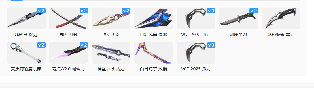 祝你游戏愉快!!!;艾沃莉的梦之翼 奥丁,剥皮小刀,VCT 2025 爪刀,盖亚的复仇 狂徒,噬影者 狂徒,堕天遗武 狂徒,