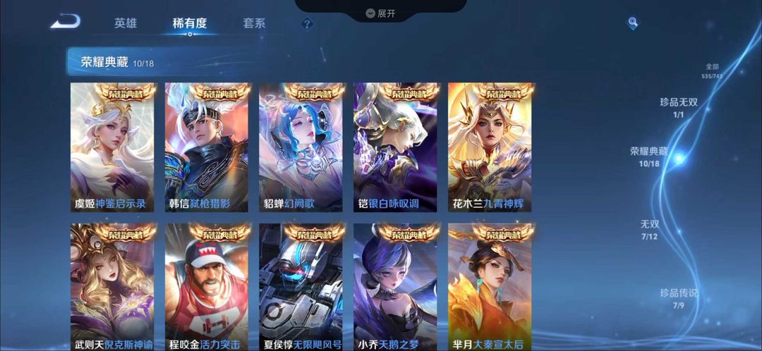 【非云直上】V10★皮肤榜一★539皮满典藏★鲁班时之奇旅会员★虞姬黛羽霜翎星元★吕布白金战神★全能大师★多金标★个性按键