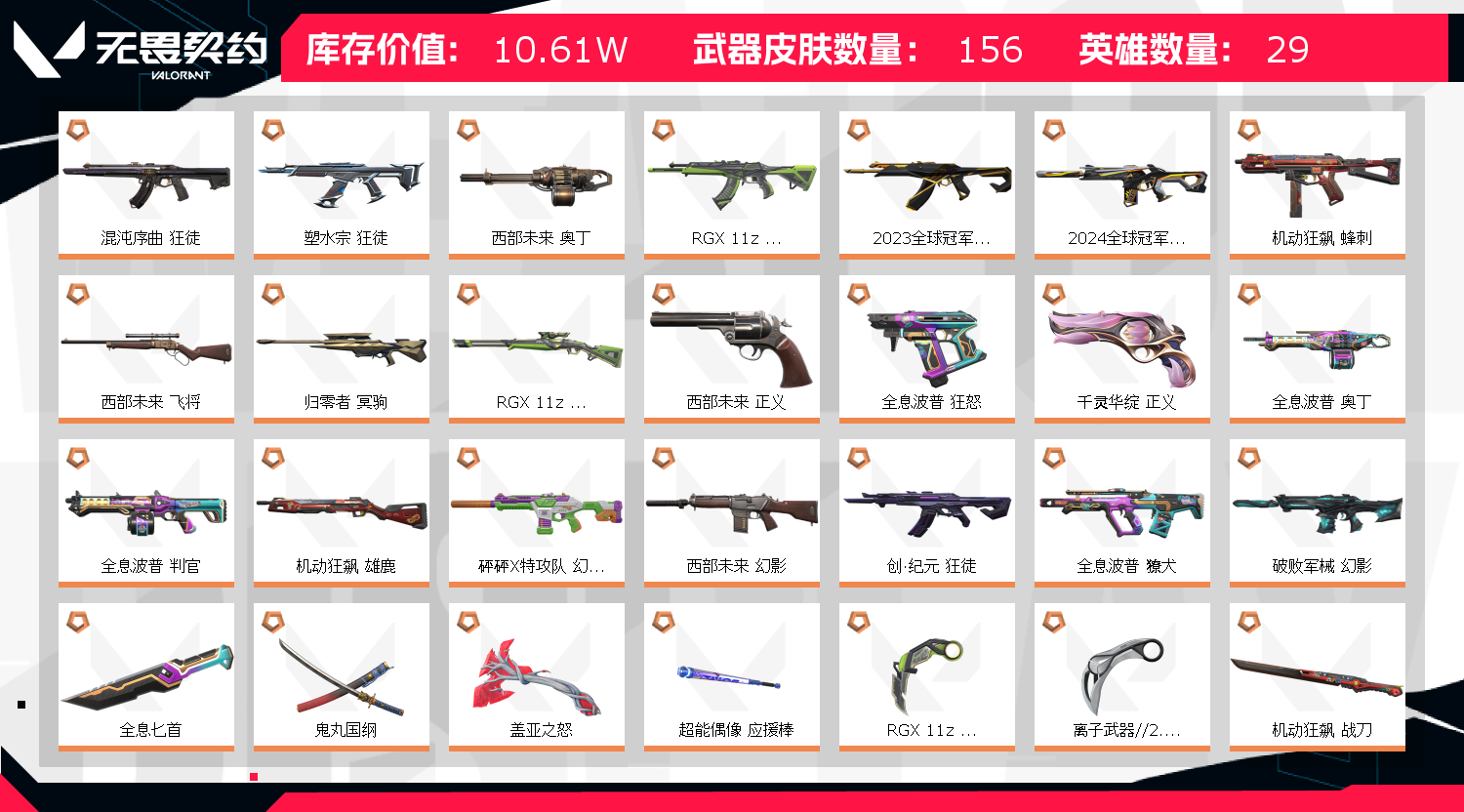 • 皮肤资产价值: 106100