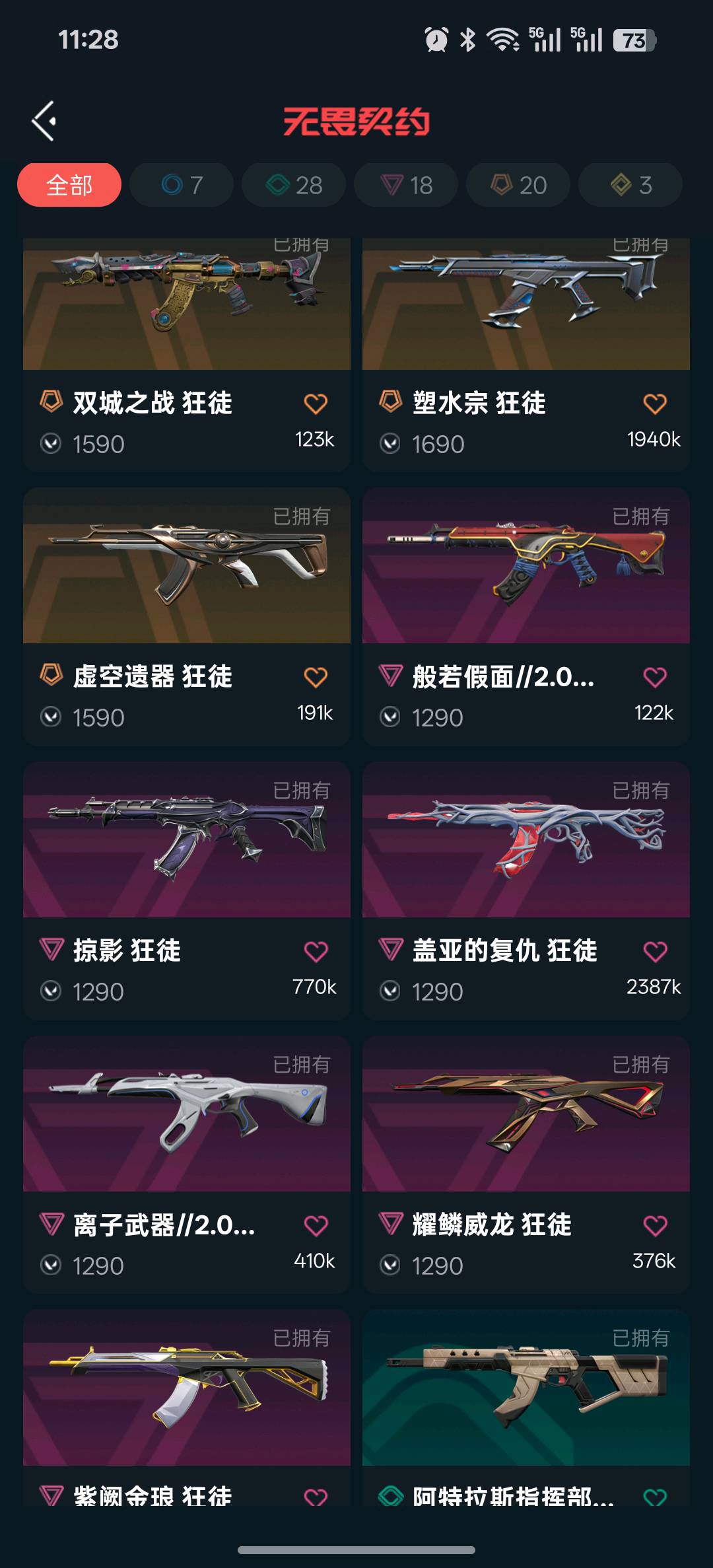 首页 > 租号大厅 > 无畏契约-wegame > wegame/wegame > 19把热门狂徒,10把热门幻影