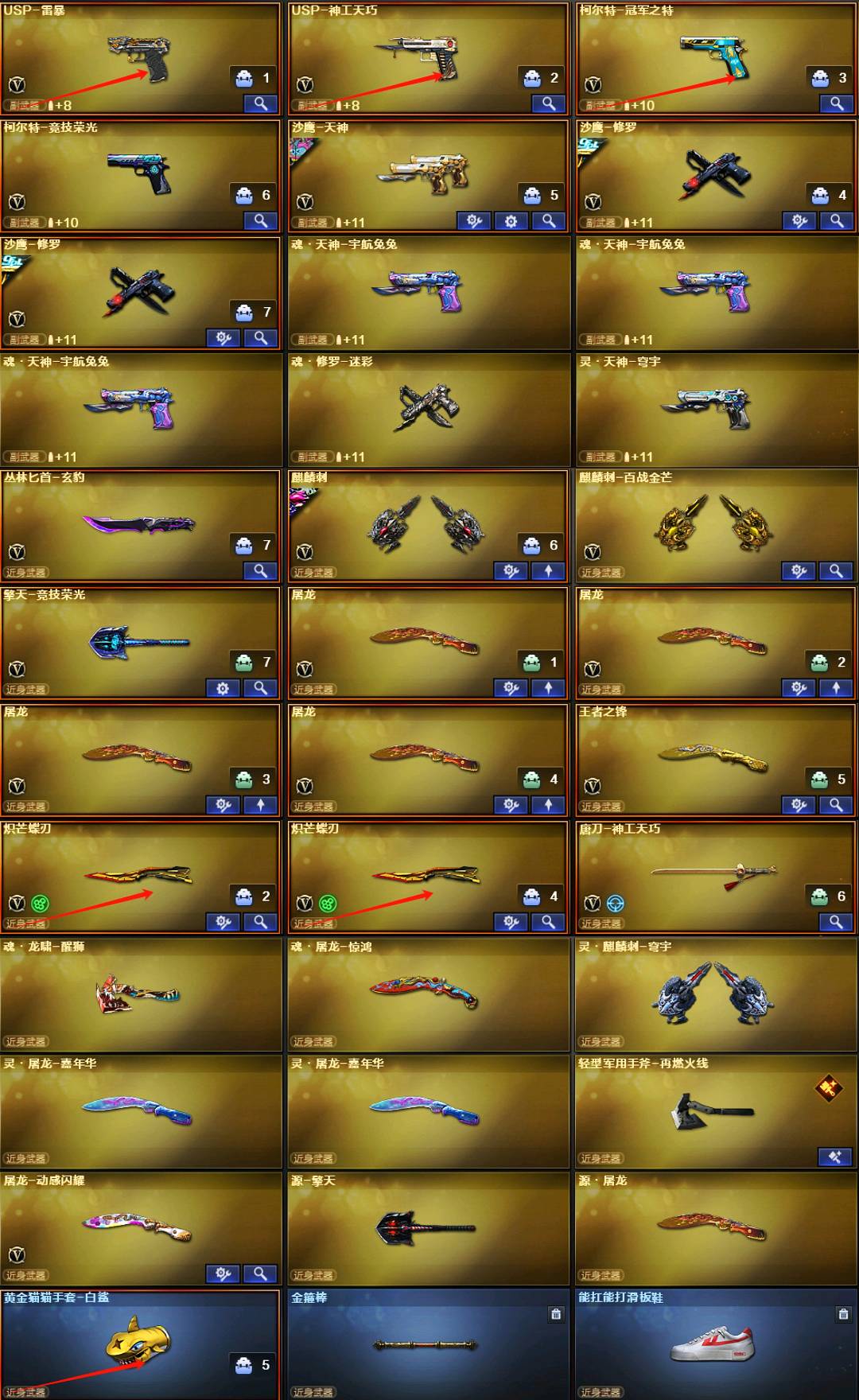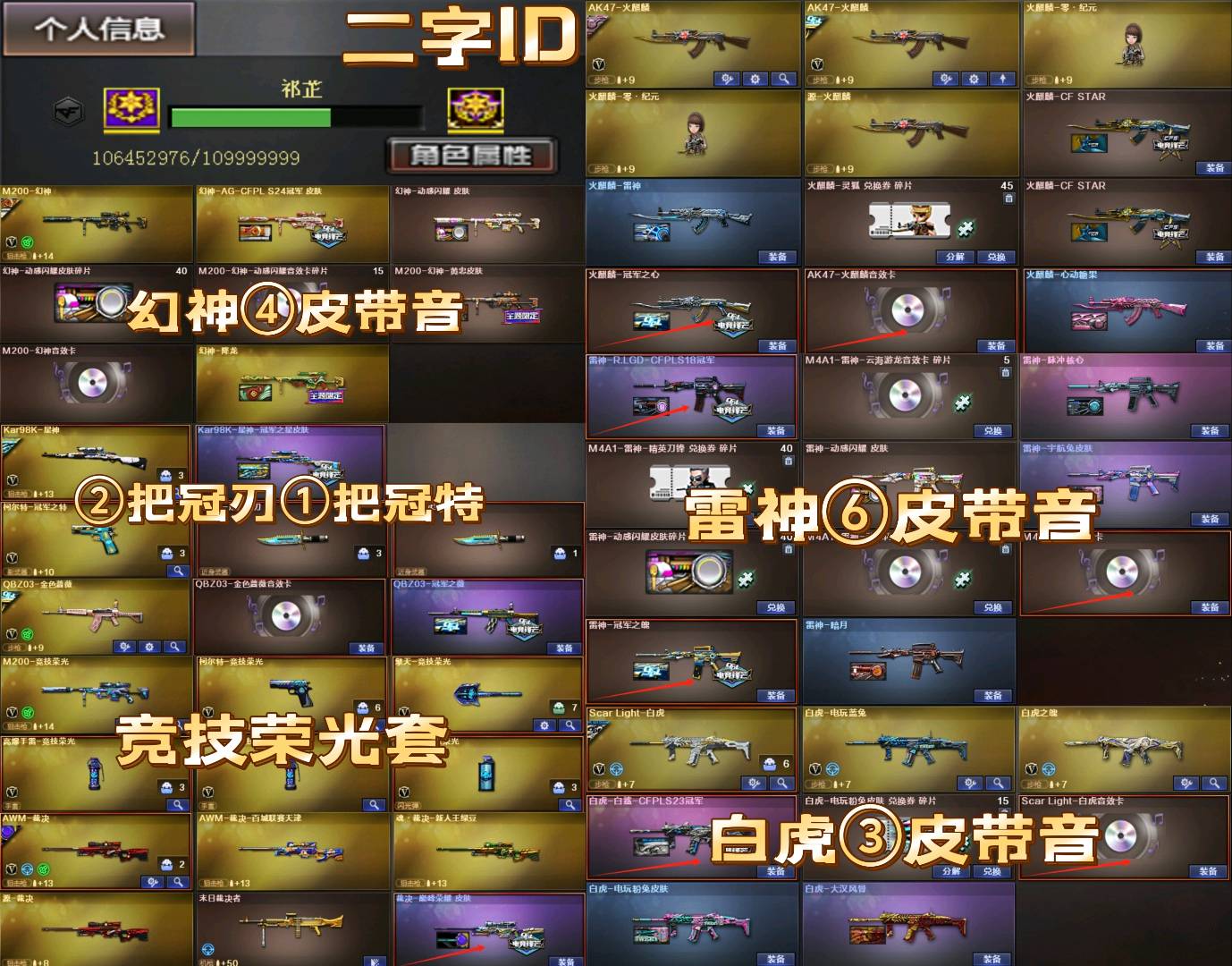 二字ID❤️幻神AG④皮+幻卡❤️USP雷暴冠特冠刃②把炽芒蝶刃❤️冠军之薇玄武⑥烈龙蝴蝶⑩音效卡