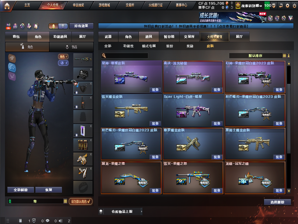 爆破全装/生化全装/M200-幻神+荣耀世冠白鲨2023皮肤/王者风神/裁决秘银+音效卡/星神-长生圣莲/g36c-幻影/白虎玄豹全套/白虎蓝兔/QBZ03天罚/AK12-天启/VSK-94-金蚀/火麒麟/雷神+荣耀之魄+音效卡/黑骑士+暗金+音效卡/毁灭+荣耀之怒/usp冥王✘2/cop云龙/cop王者雷霆觉醒版/柯尔特荣耀世冠白鲨2023/荣耀世冠柯尔特/炽芒蝶刃✘2+荣耀世冠白鲨2023皮/屠龙+荣耀之锋皮/龙啸+冠军之怒皮/雷霆王者之锋/异变清道夫小人枪+六烈/盘龙+3炼狱/四防隼/三防潘多拉!开挂必究!;荣耀世冠-柯尔特,柯尔特-荣耀世冠白鲨2023,炽芒蝶刃,隼,RPK-盘龙,G36C-幻影,M200-幻神,