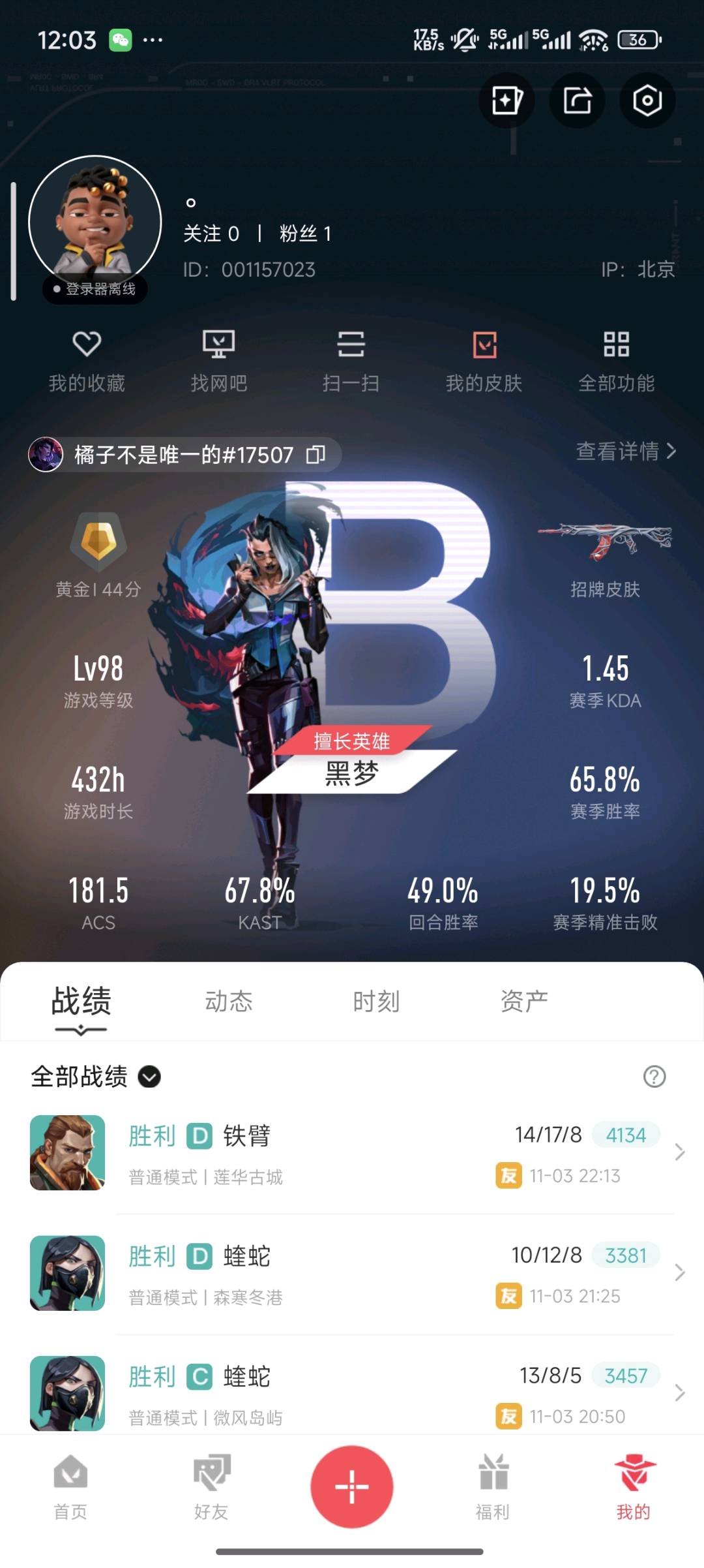 • 游戏区服:无畏契约-wegame / wegame / wegame