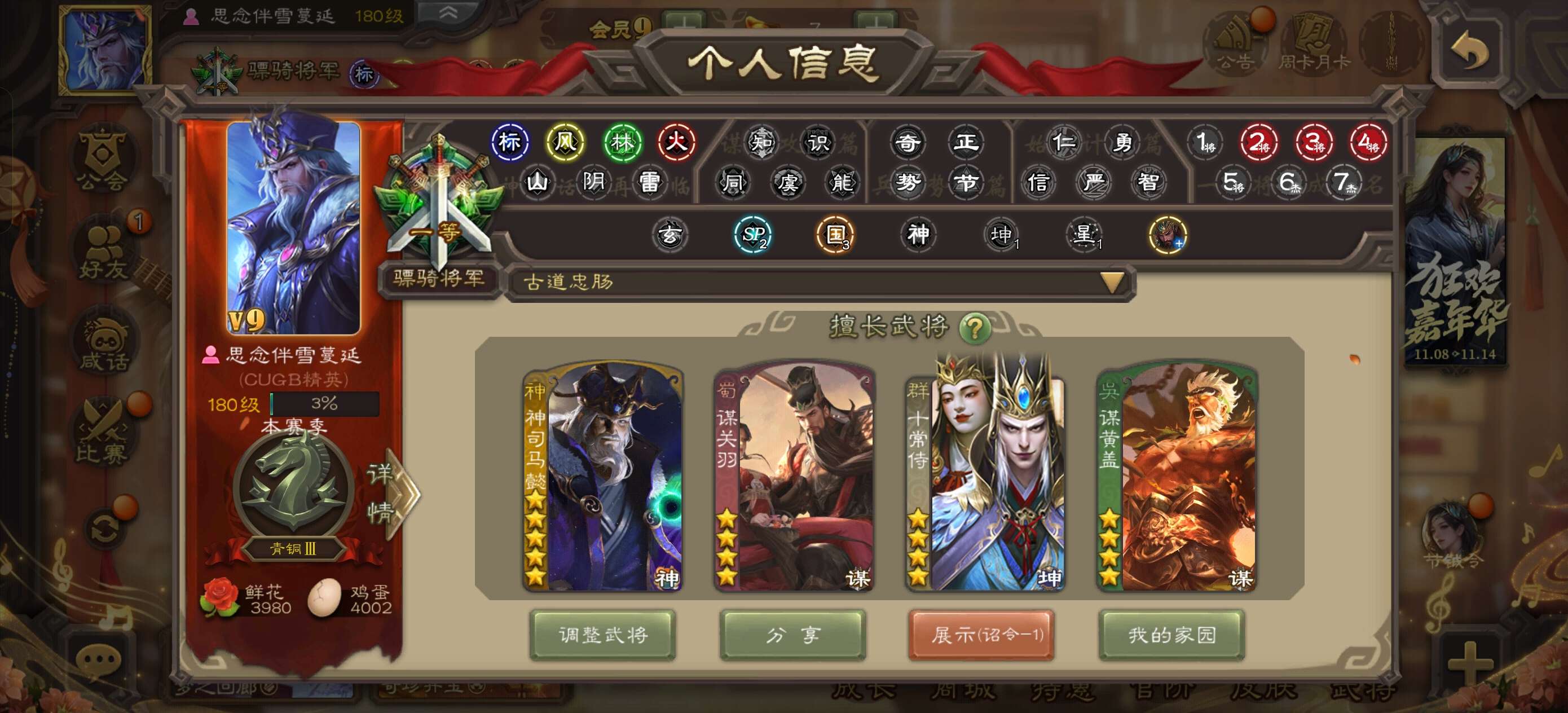 移动互通版《日租特惠》典藏谋关羽/十常侍/神司马/谋黄盖/司马昭/界徐盛/友徐庶等