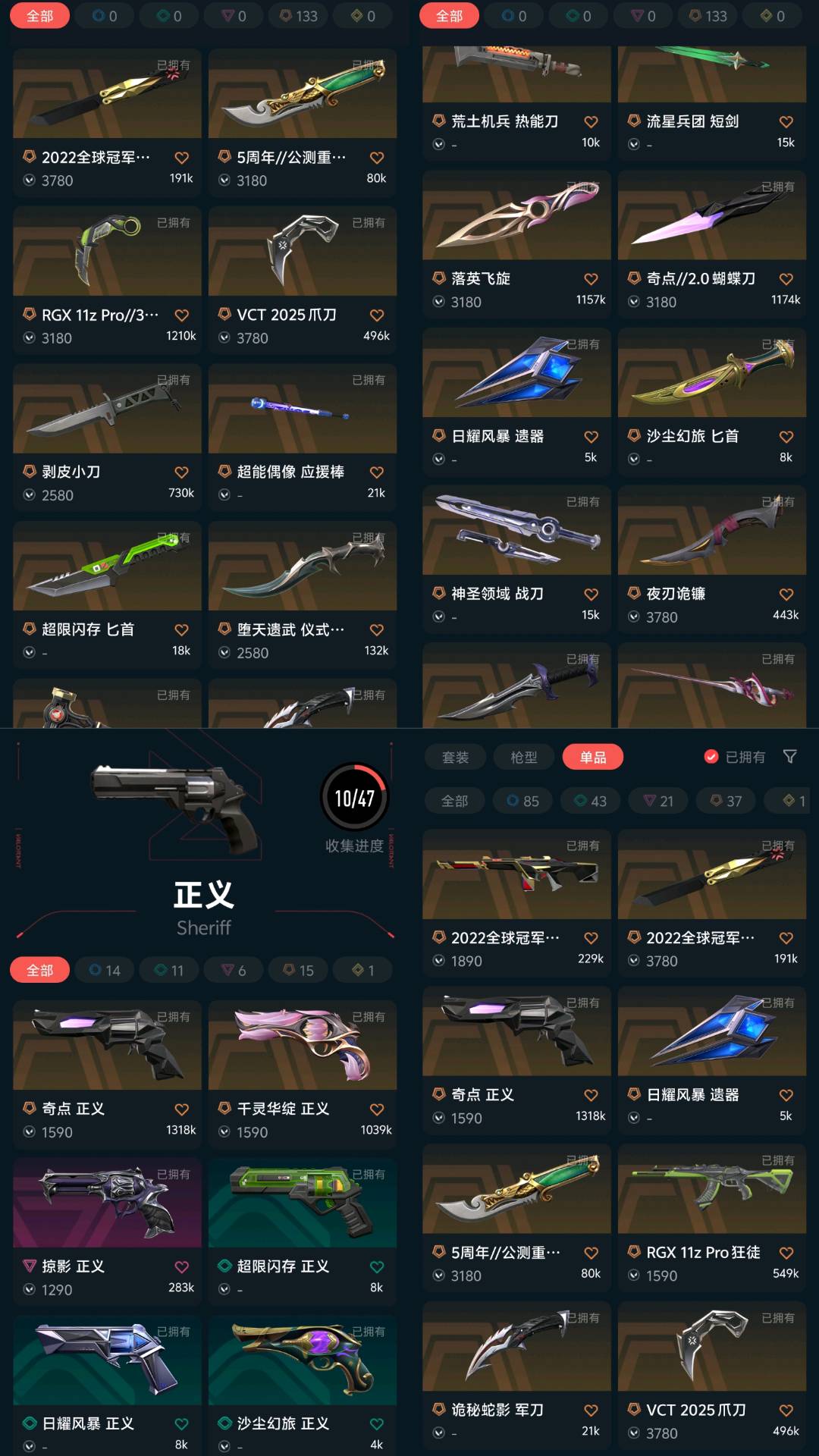 1;5周年//公测重制版 苍龙之刃,紫金爪刀,剥皮小刀,VCT 2025 爪刀,天界神兵//2.0 幻影,盖亚的复仇 狂徒,掠影 戍卫,