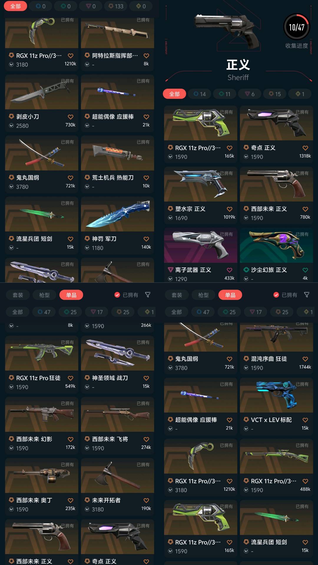 1;西部未来 奥丁,剥皮小刀,盖亚的复仇 狂徒,掠影 戍卫,侦察力量 幻影,紫阙金琅 狂徒,RGX 11z Pro 狂徒,