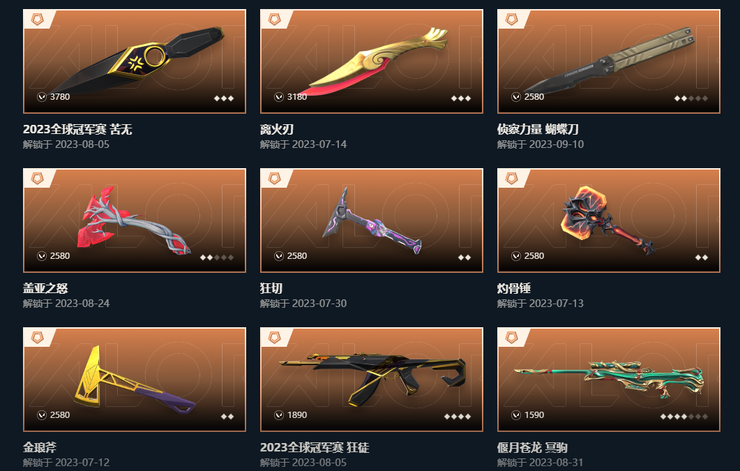 已备案冻结秒解✨离火刃✨双城之战正义✨23冠军套✨侦察力量套✨紫阙金琅套✨盖亚套✨苍龙冥狙