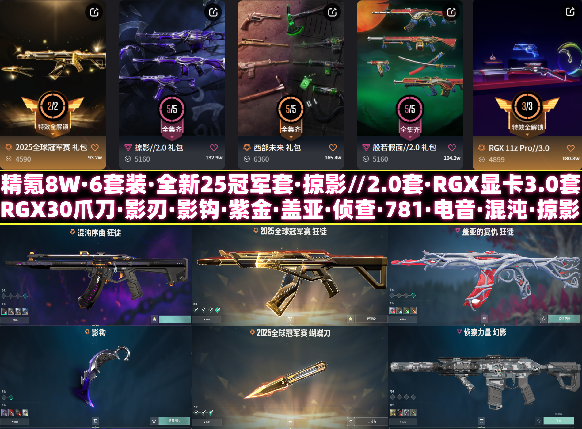 精氪8W✅6套装✅全新25冠军套✅掠影20套RGX30显卡套✅盖亚混沌侦查影钩影刃✅电音光谱起点正义