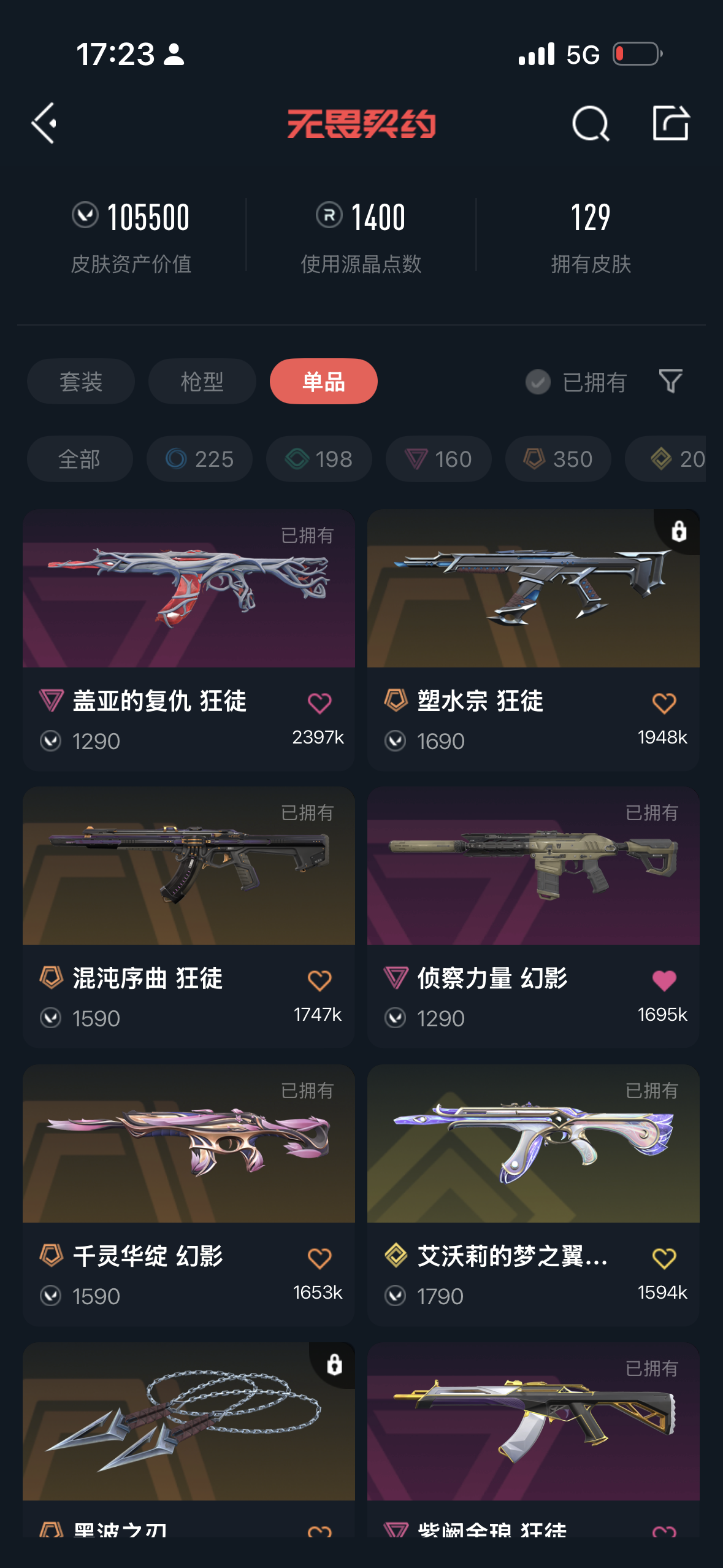 喜欢来租;紫金爪刀,盖亚的复仇 狂徒,掠影 戍卫,洪荒怒焰 狂徒,异鳞魔蛇 幻影,侦察力量 幻影,紫阙金琅 狂徒,