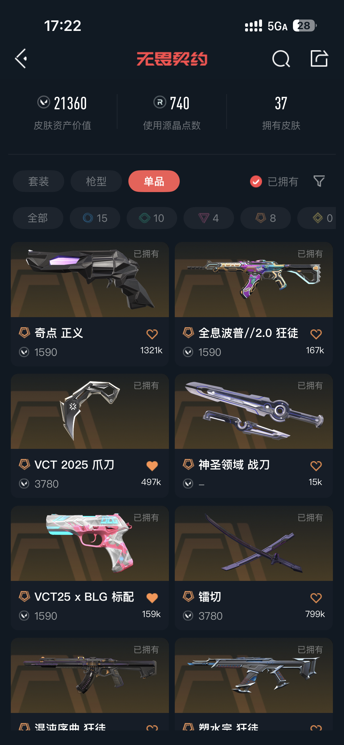 • 皮肤资产价值: 21360