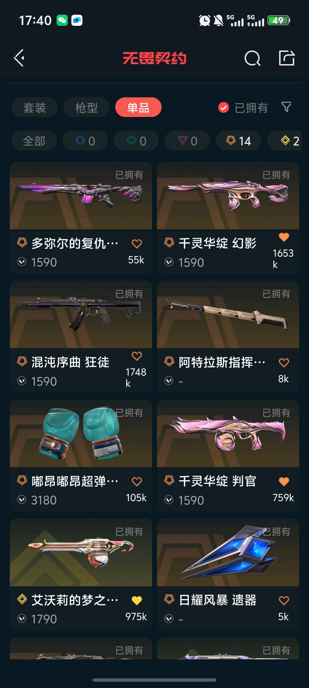 猫猫ak,混沌ak 流脓ak 光荣ak 莲花m4,莲花喷子,莲花正义,离子套 法修散打拳套 奇幻朋克戍卫,多尼尔复仇戍卫 猫猫奥丁,离子战神;艾沃莉的梦之翼 奥丁,虚空遗器 狂徒,洪荒怒焰 狂徒,混沌序曲 狂徒,光荣异象 狂徒,离子武器//2.0 狂徒,千灵华绽 正义,