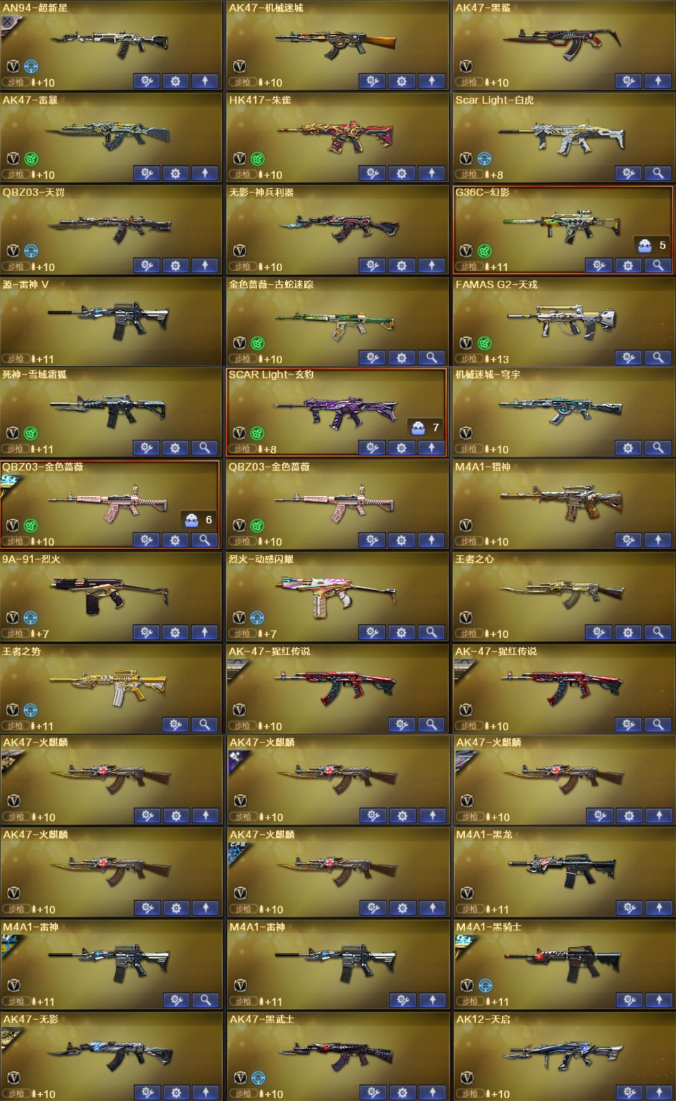满音✅幻神+星神+qbz+裁决三件套✅G36c幻影/法玛斯天戎/凌虎✅USP冥王×4✅冠特刃✅手副满