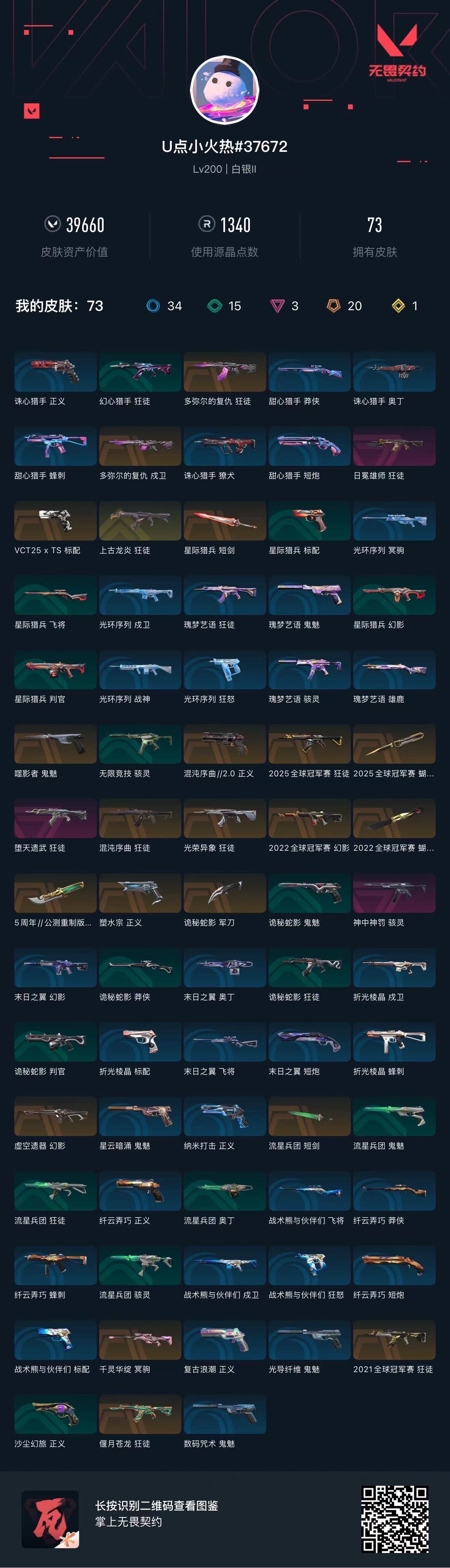 ✨冻结无法上号看wegame个人信息✨汤圆电竞(拼音)✨解冻 【拥有套装】2022全球冠军赛套装(2022全球冠军赛-幻影,2022全球冠军赛-蝴蝶刀)2025全球冠军赛套装(2025全球冠军赛-狂徒,2025全球冠军赛-蝴蝶刀 【拥有近战武器】5周年//公测重制版-苍龙之刃 【拥有步枪】多弥尔的复仇-狂徒,多弥尔的复仇-戍卫,光荣异象-狂徒,虚空遗器-幻影,混沌序曲-狂徒,2021全球冠军赛-狂徒,偃月苍龙-狂徒,上古龙炎-狂徒,堕天遗武-狂徒,日冕雄师-狂徒 【拥有狙击枪】千灵华绽-冥驹 【拥有冲锋枪】神中神罚-骇灵 【拥有手枪】VCT25-x-TS-标配,混沌序曲//2.0-正义,噬影者-鬼魅,塑水宗-正义 【稀有挂件】FRGMTx皮蛋挂饰;5周年//公测重制版 苍龙之刃,堕天遗武 狂徒,混沌序曲 狂徒,光荣异象 狂徒,2021全球冠军赛 狂徒,塑水宗 正义,