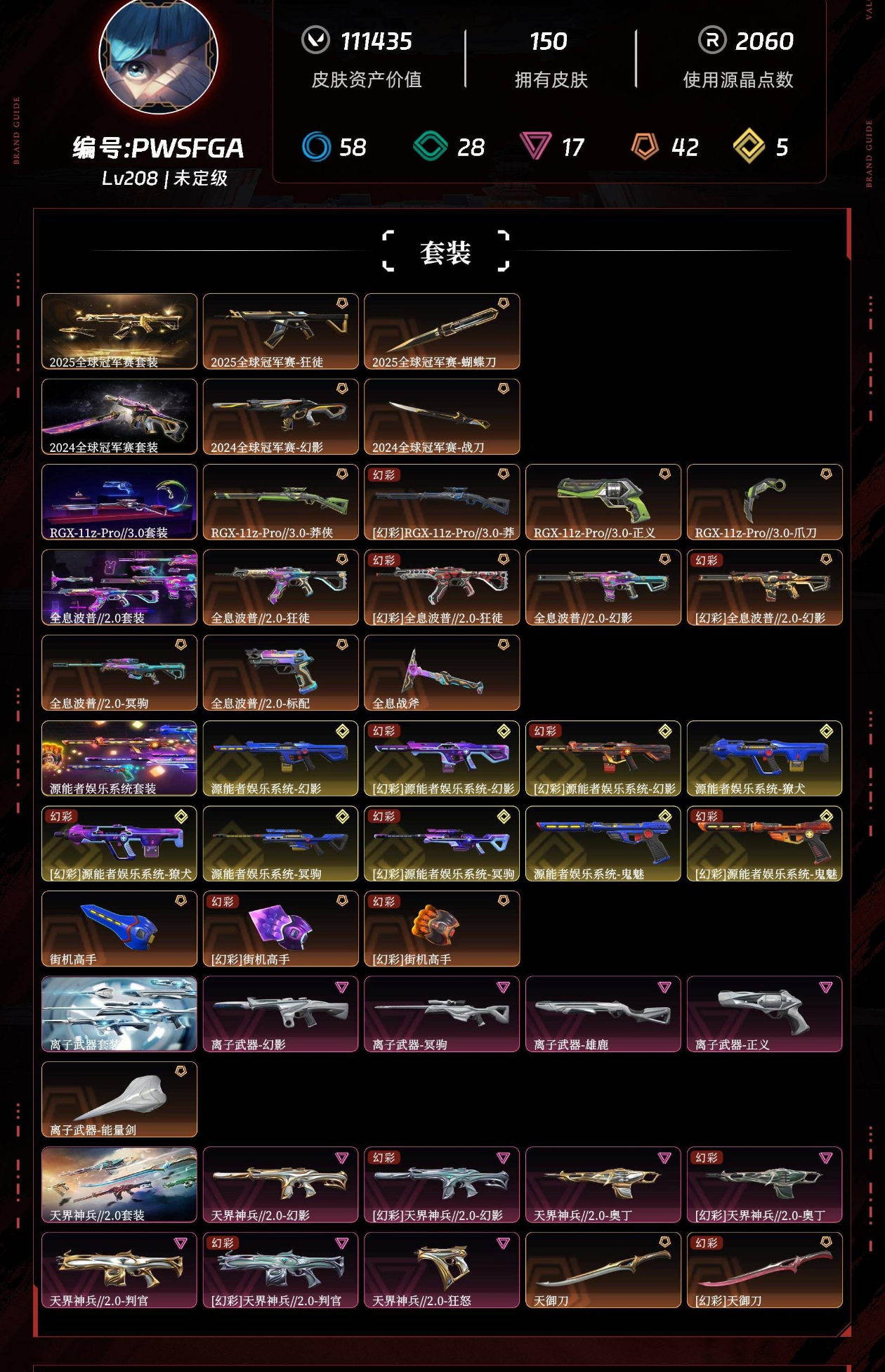 11W+库存精品号♥2000R点♥24 25冠军套♥2把VCT♥显卡套♥娱乐套♥精品皮肤多