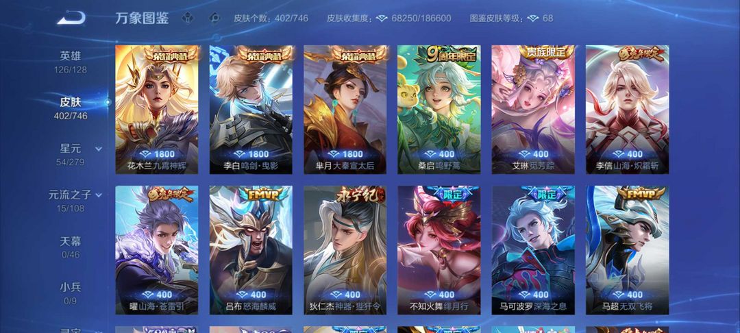 V9丨荣耀四典藏丨典藏半月丨典藏孙尚香丨典藏小乔丨典藏鲁班虎年五套皮肤丨猪年凯丨赵云世冠丨牛年吕布丨牛年孙功离丨520限定孙策丨限定皮肤多多丨挂机永久拉黑!