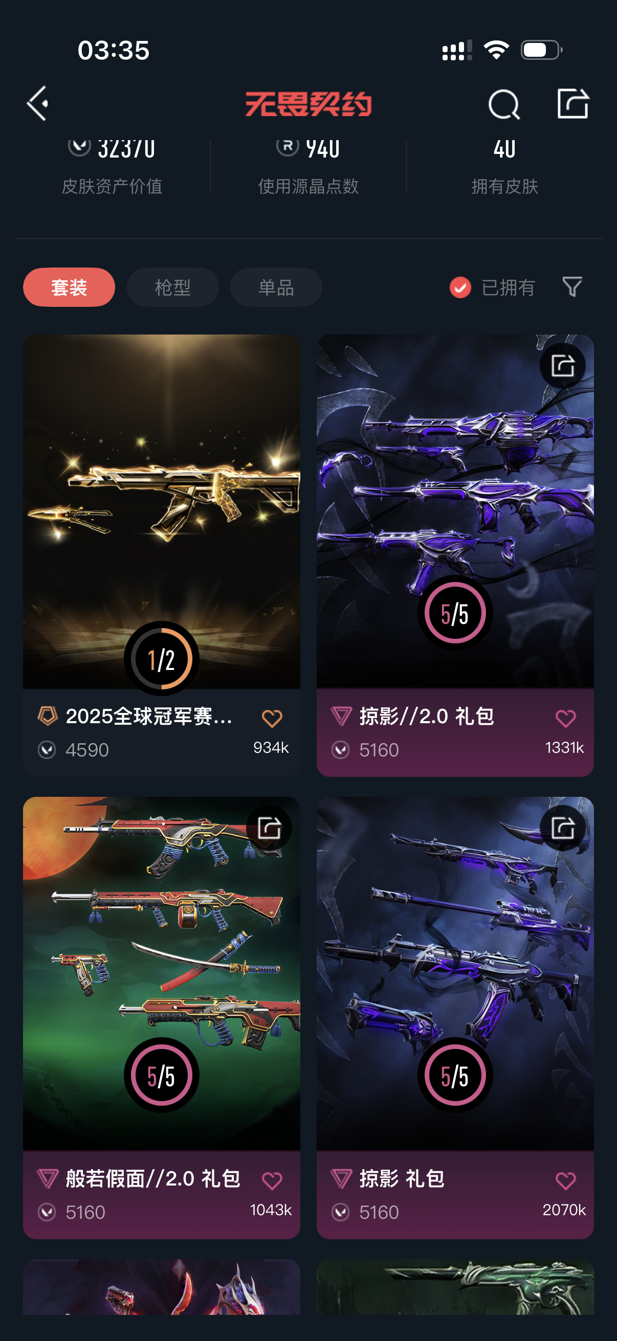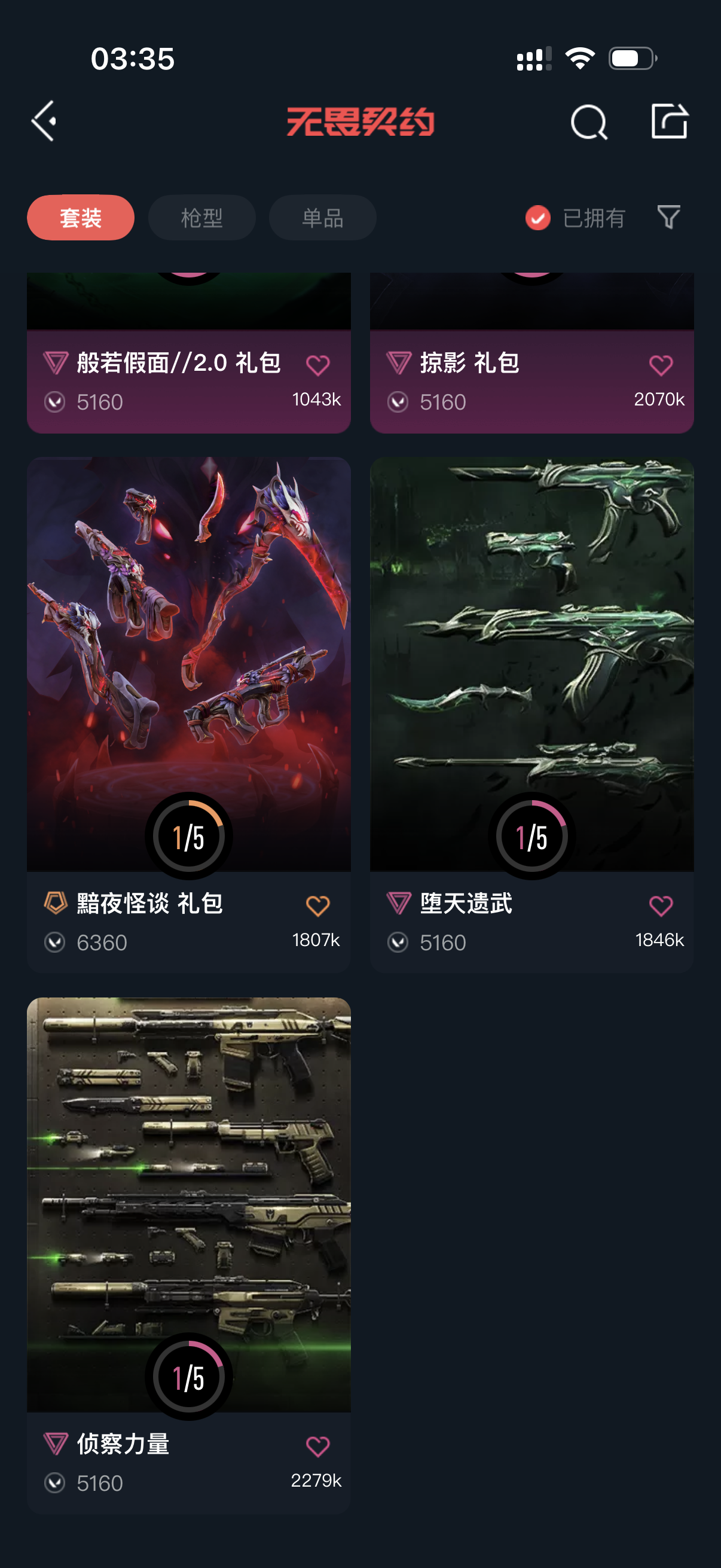 3套满皮肤;掠影 戍卫,掠影 狂徒,堕天遗武 狂徒,掠影 正义,