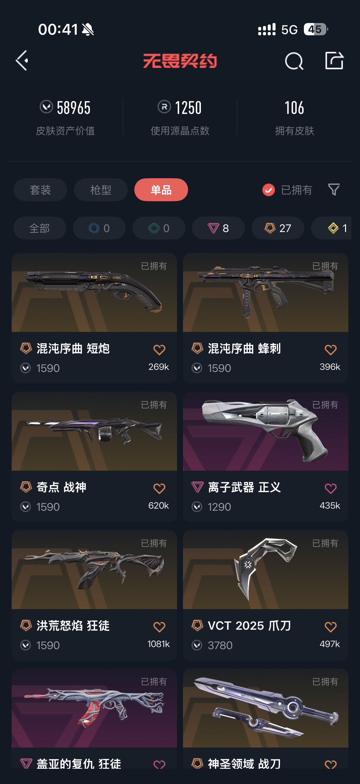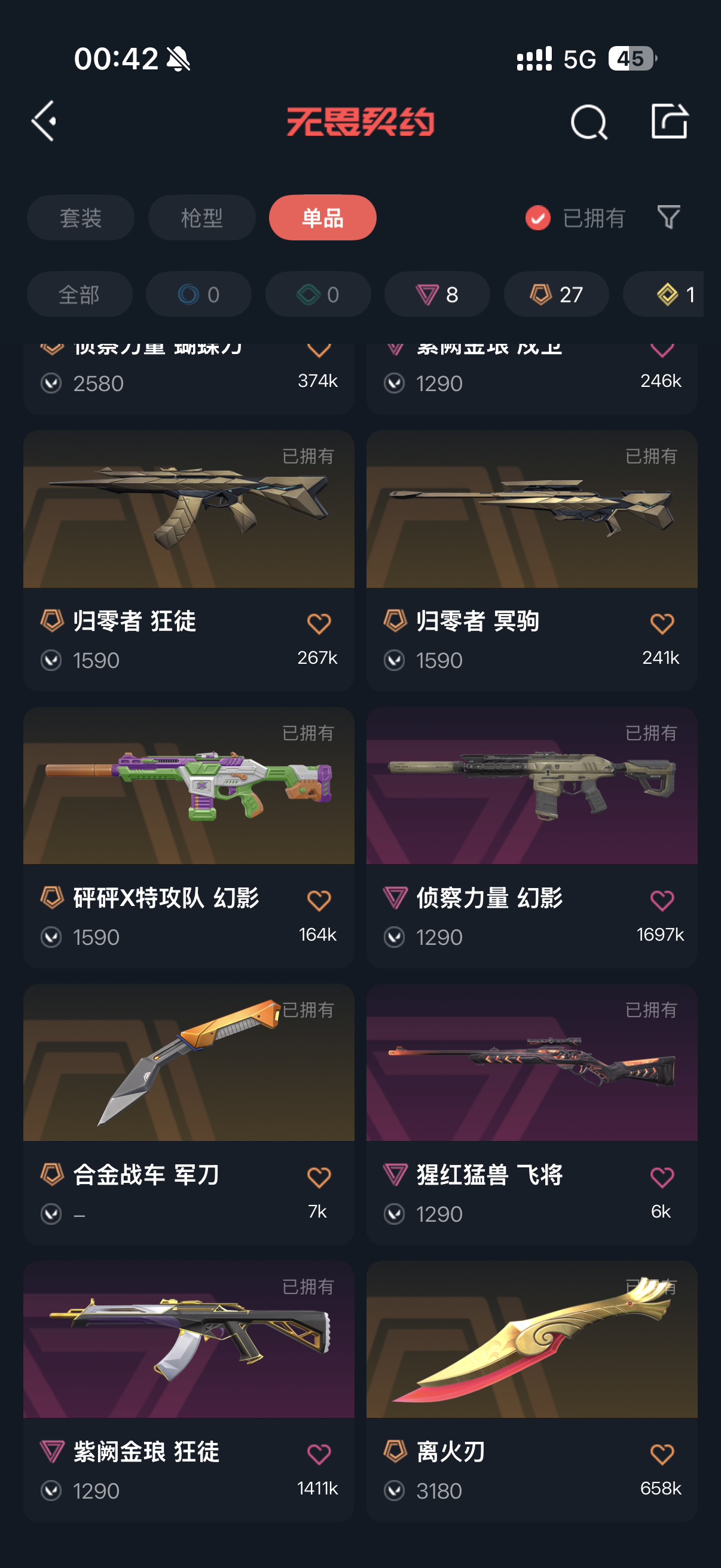 近战武器-离火刃,近战武器-VCT2025爪刀,近战武器-显卡3.0爪刀,近战武器-RGX11zPro2.0蝴蝶刀,近战武器-剥皮小刀,近战武器-侦察力量蝴蝶刀,近战武器-沙尘幻旅匕首,近战武器-弧光异彩军刀,近战武器-合金战车军刀,近战武器-神圣领域战刀; 【枪皮】:狂徒-2021全球冠军赛,标配-RGX11zPro2.0,正义-塑水宗,正义-偃月苍龙,短炮-混沌序曲,骇灵-奇点,骇灵-RGX11zPro2.0,蜂刺-混沌序曲,判官-千灵华绽,狂徒-机动狂飙,狂徒-归零者,狂徒-洪荒怒焰,幻影-砰砰X特攻队,幻影-RGX11zPro2.0,冥驹-归零者,冥驹-RGX11zPro2.0,战神-奇点,獠犬-781-A协议,鬼魅-天界神兵,正义-离子武器,雄鹿-起源,狂徒-盖亚的复仇,狂徒-紫阙金琅,幻影-侦察力量,戍卫-紫阙金琅,飞将-猩红猛兽,标配-星际猎兵,正义-合金战车,正义-沙尘幻旅,短炮-钢轨卫士,短炮-弧光异彩,狂怒-钢轨卫士,骇灵-沙尘幻旅,蜂刺-合金战车,蜂刺-弧光异彩,判官-诡秘蛇影,狂徒-诡秘蛇影,狂徒-弧光异彩,狂徒-沙尘幻旅,幻影-合金战车,幻影-噬源兽防卫工程,戍卫-钢轨卫士,獠犬-弧光异彩,冥驹-异彩晶棱,飞将-合金战车,飞将-沙尘幻旅,莽侠-诡秘蛇影,标配-光导纤维,标配-彩梦之城,标配-超能冲撞,鬼魅-胡桃狂想,鬼魅-数码咒术,鬼魅-信手涂鸦,狂怒-花漾粉红,狂怒-萌彩剪影,骇灵-光导纤维,骇灵-花漾粉红,骇灵-信手涂鸦,蜂刺-战术小伙伴,蜂刺-胡桃狂想,判官-萌彩剪影,判官-数码咒术,雄鹿-彩梦之城,幻影-战术小伙伴,戍卫-彩梦之城,戍卫-花漾粉红,戍卫-萌彩剪影,獠犬-胡桃狂想,獠犬-数码咒术,冥驹-胡桃狂想,冥驹-花漾粉红,飞将-光导纤维,飞将-信手涂鸦,奥丁-战术小伙伴,奥丁-信手涂鸦,战神-萌彩剪影,战神-数码咒术,幻影-神圣领域,獠犬-神圣领域,狂怒-神圣领域,战神-神圣领域,幻影-末日之翼,戍卫-折光棱晶,戍卫-月球哨兵,冥驹-星云暗涌,莽侠-月球哨兵,飞将-末日之翼,正义-月球哨兵,鬼魅-星云暗涌,标配-折光棱晶,短炮-末日之翼,骇灵-星云暗涌,蜂刺-折光棱晶,蜂刺-星云暗涌,雄鹿-月球哨兵,奥丁-末日之翼;【热门卡面】:分崩离析卡面,分神的决斗者卡面,VCT2025CN联赛卡面,VCT2025太平洋联赛卡面,VCT2025美洲联赛卡面,VCT2025EMEA联赛卡面,势不可挡星礈卡面,RGX11zPro2.0卡面,逆向独行卡面,势不可挡幽影卡面,情人节不死鸟卡面,势不可挡KO卡面,势不可挡零卡面,离火刃凰卡面,离火刃凤卡面;【热门挂饰】:V25第三幕神话挂饰,神中神挂饰,VCT2025CN联赛挂饰,VCT2025太平洋联赛挂饰,VCT2025EMEA联赛挂饰,VCT2025美洲联赛挂饰,RGX11zPro2.0挂饰,第七季超凡挂饰,针织蜜蜂挂饰,冬日絮语挂饰,高音谱号挂饰,幸运中国结挂饰,;
