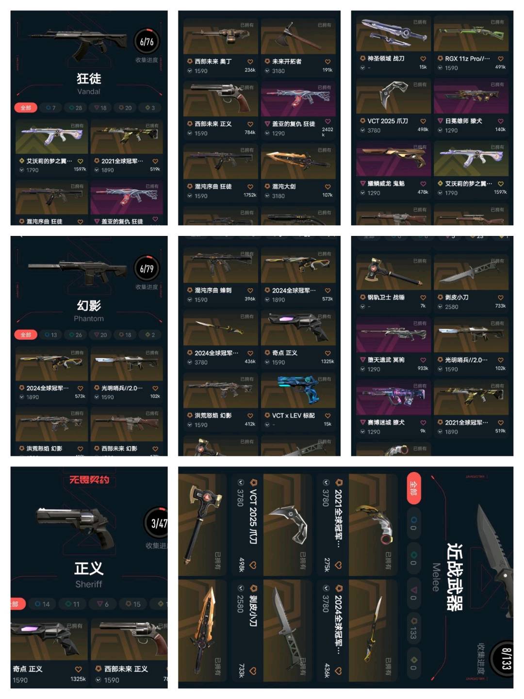 mm;西部未来 奥丁,剥皮小刀,VCT 2025 爪刀,盖亚的复仇 狂徒,洪荒怒焰 幻影,混沌序曲 狂徒,2021全球冠军赛 狂徒,
