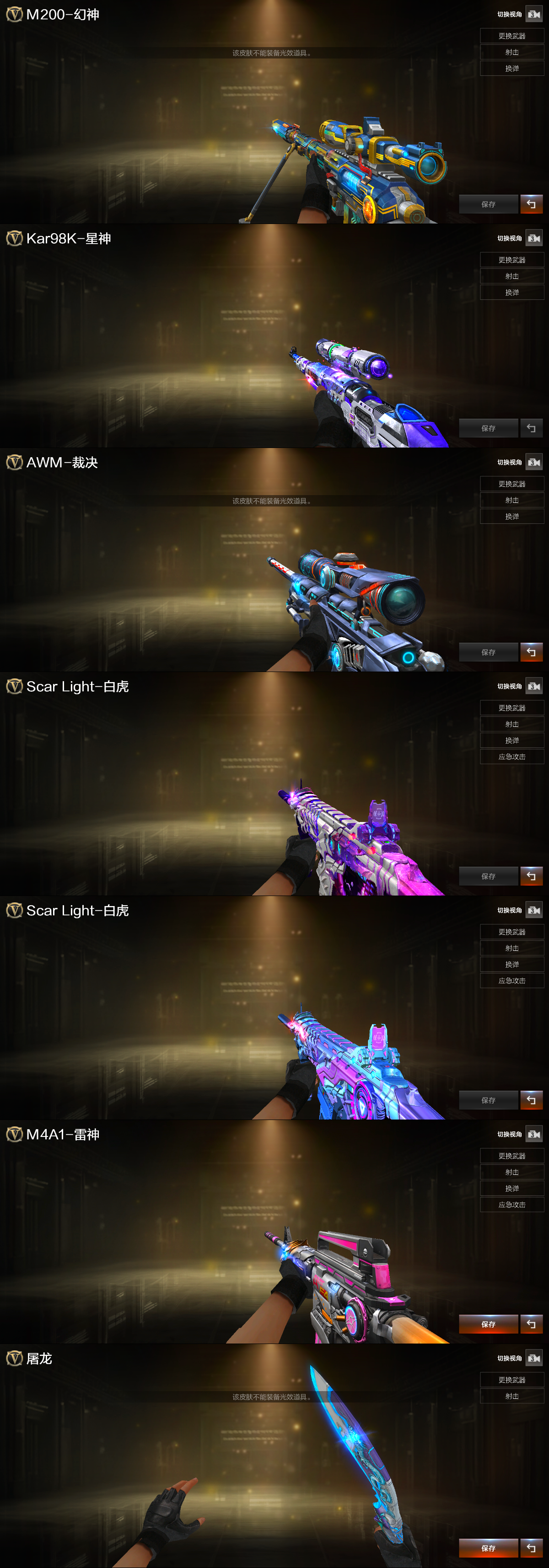 传说辉光/竞技荣光/幻神-电流骇客/98K-星神璀璨/裁决-羽掣/白虎-暗星霓虹机甲 /QBZ金色蔷