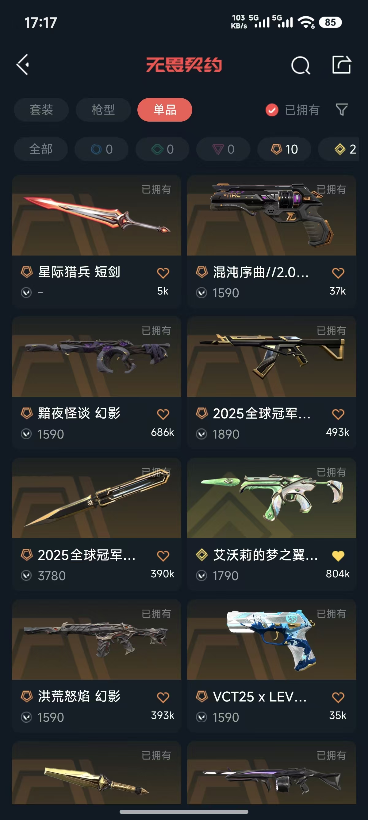 25冠军套装✨艾沃莉狂徒✨古神 流脓幻影✨混沌2.0正义✨VCT标配✨猫猫骇灵