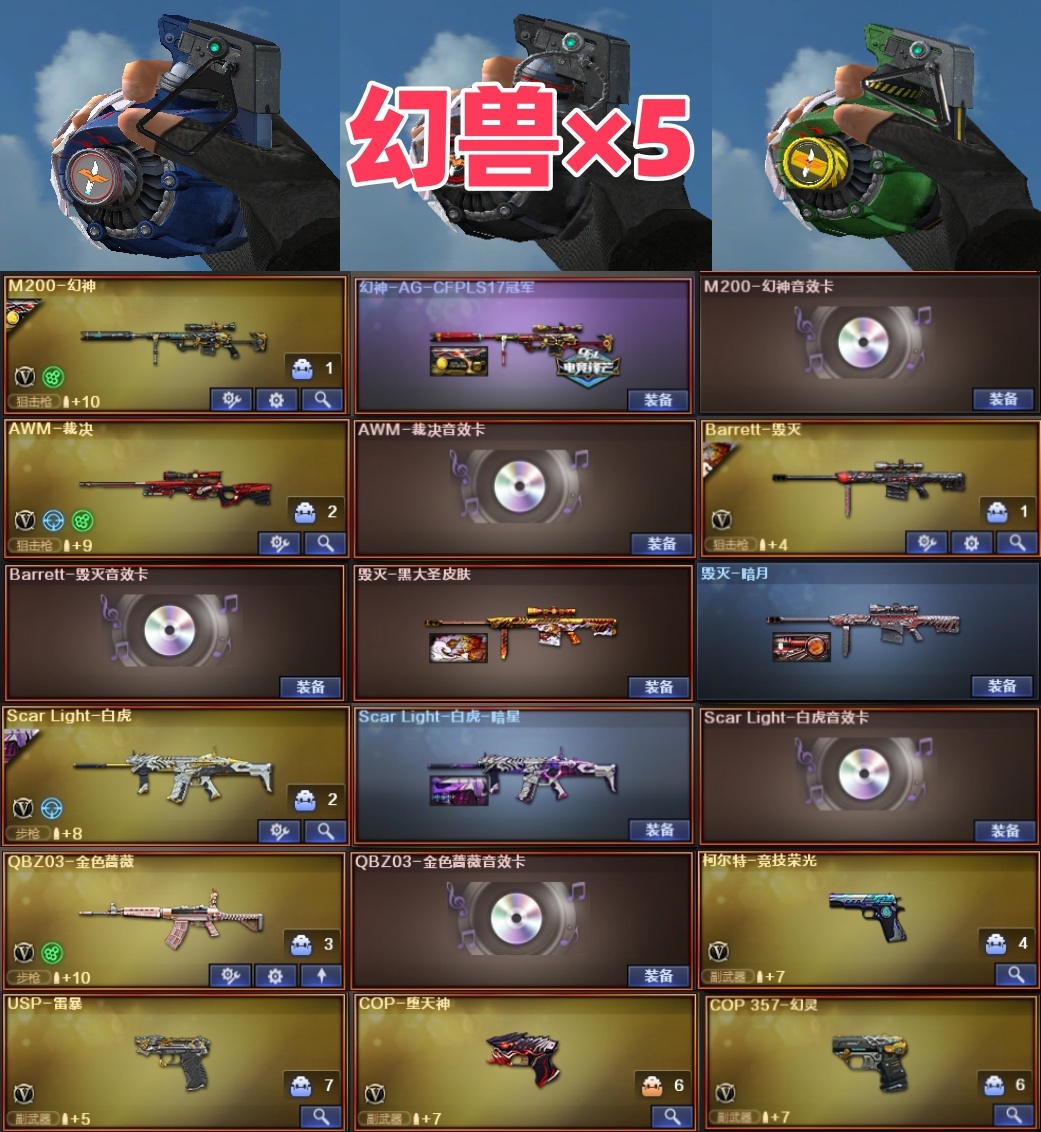 传奇3/10号【北部】五套幻兽⭐幻神AG+音⭐裁决音效卡⭐usp雷暴cop×2⭐白虎暗星音蔷薇音