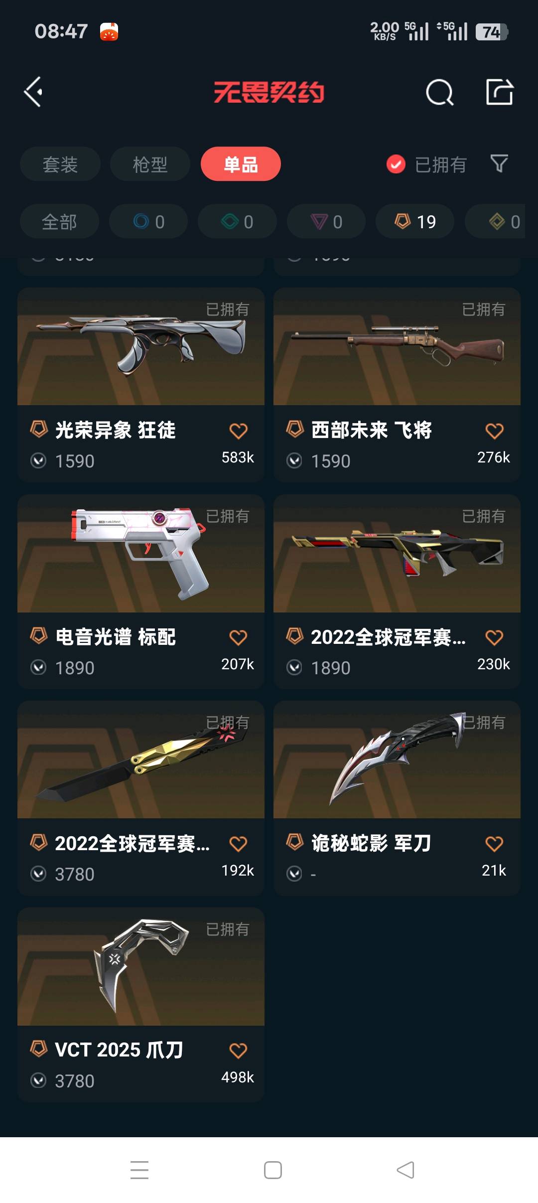 炸鱼号,反炸鱼号。;VCT 2025 爪刀,盖亚的复仇 狂徒,侦察力量 幻影,紫阙金琅 狂徒,天界神兵 戍卫,混沌序曲 狂徒,塑水宗 狂徒,