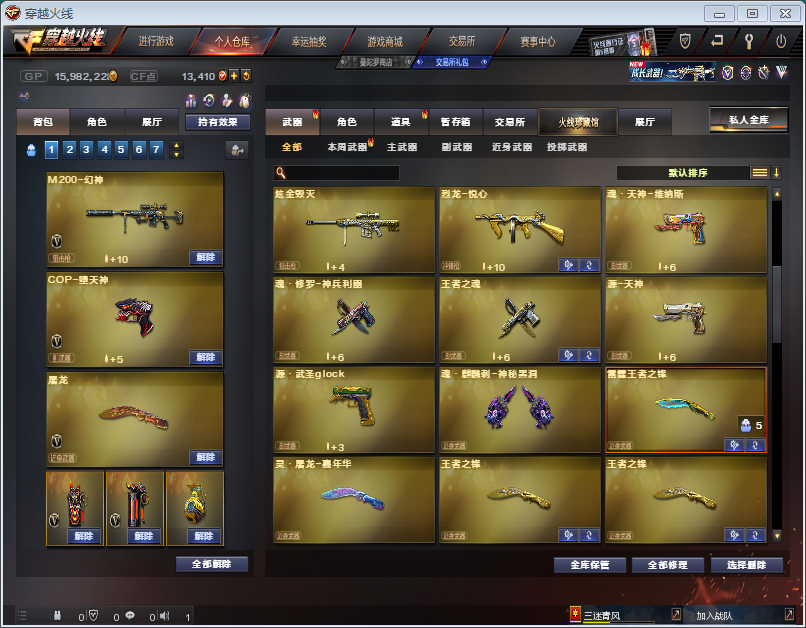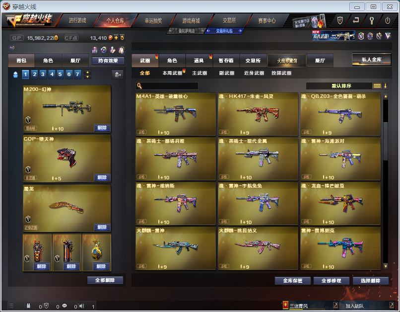幻神90V✓M4雷霆王者翼怒力击幻圣心✓炫金毁灭✓8烈龙✓堕天神朱雀✓毁灭音效卡✓耀金皮肤✓