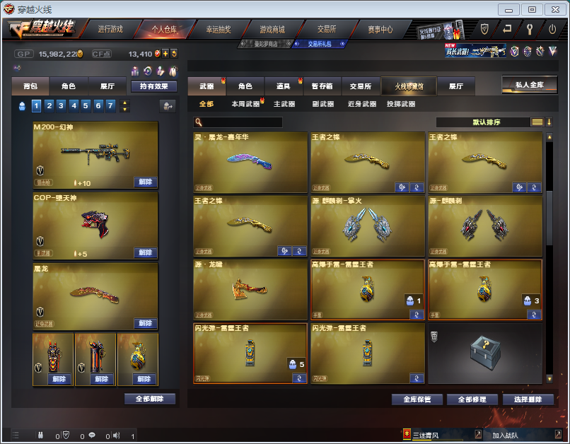 幻神90V✓M4雷霆王者翼怒力击幻圣心✓炫金毁灭✓8烈龙✓堕天神朱雀✓毁灭音效卡✓耀金皮肤✓;RPK-盘龙,M200-幻神,