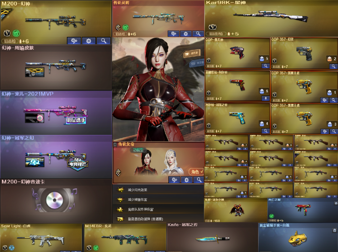 传说女帝+传说灵眸丨幻神3皮宠儿+音效卡丨星神风神白虎QBZ+冠特冠刃+满副丨6盘6烈+死亡眼