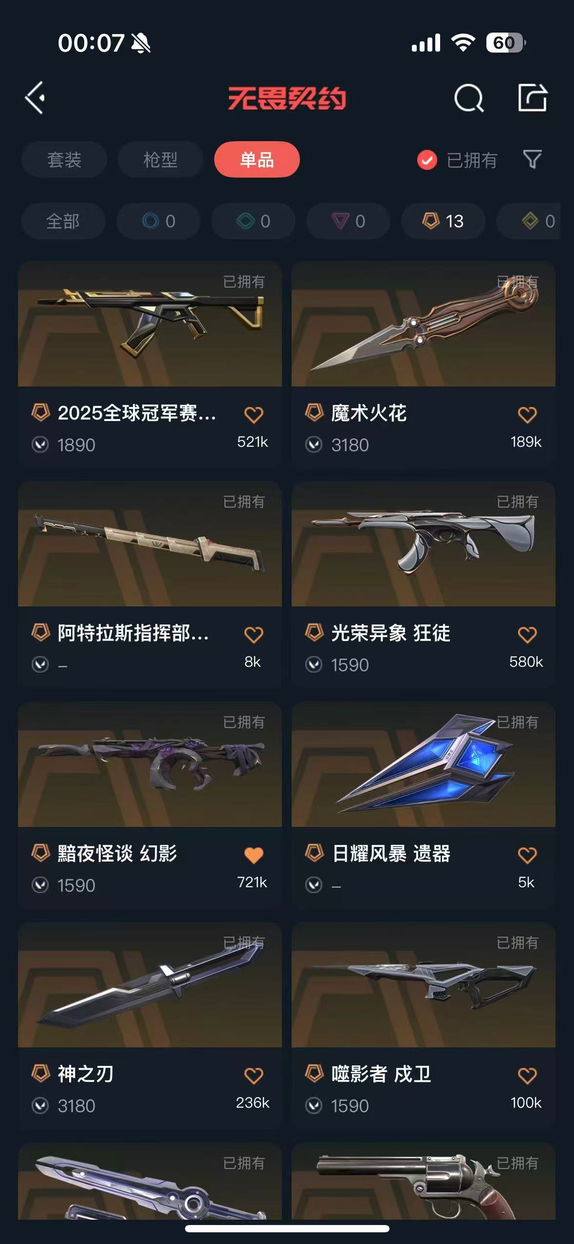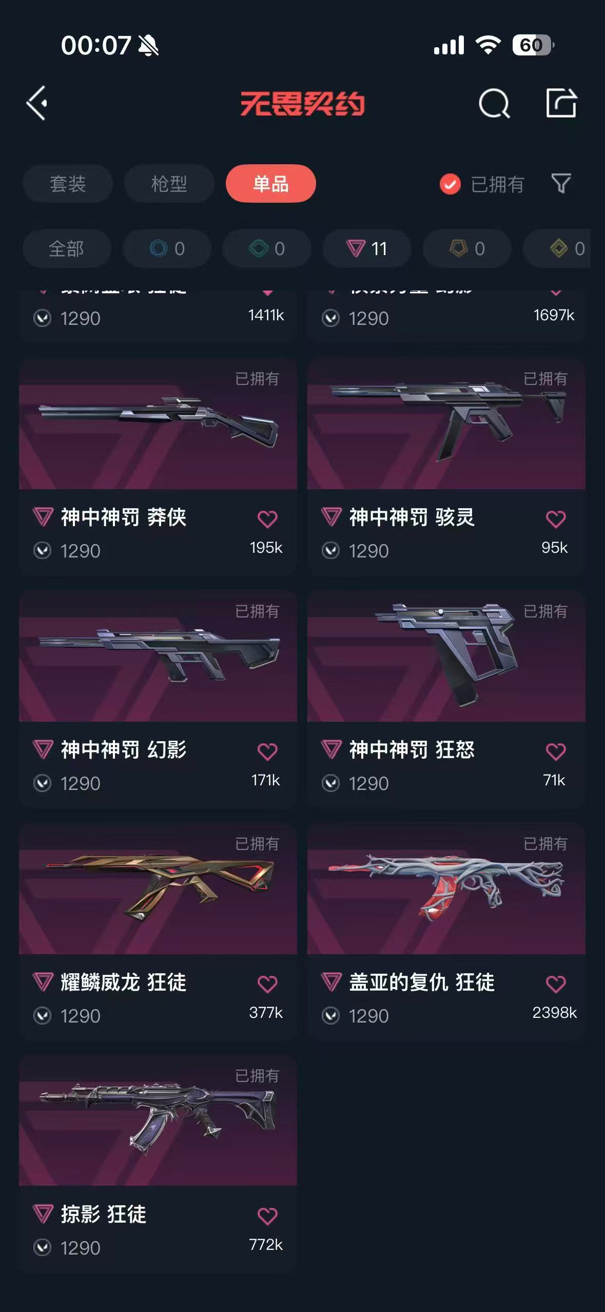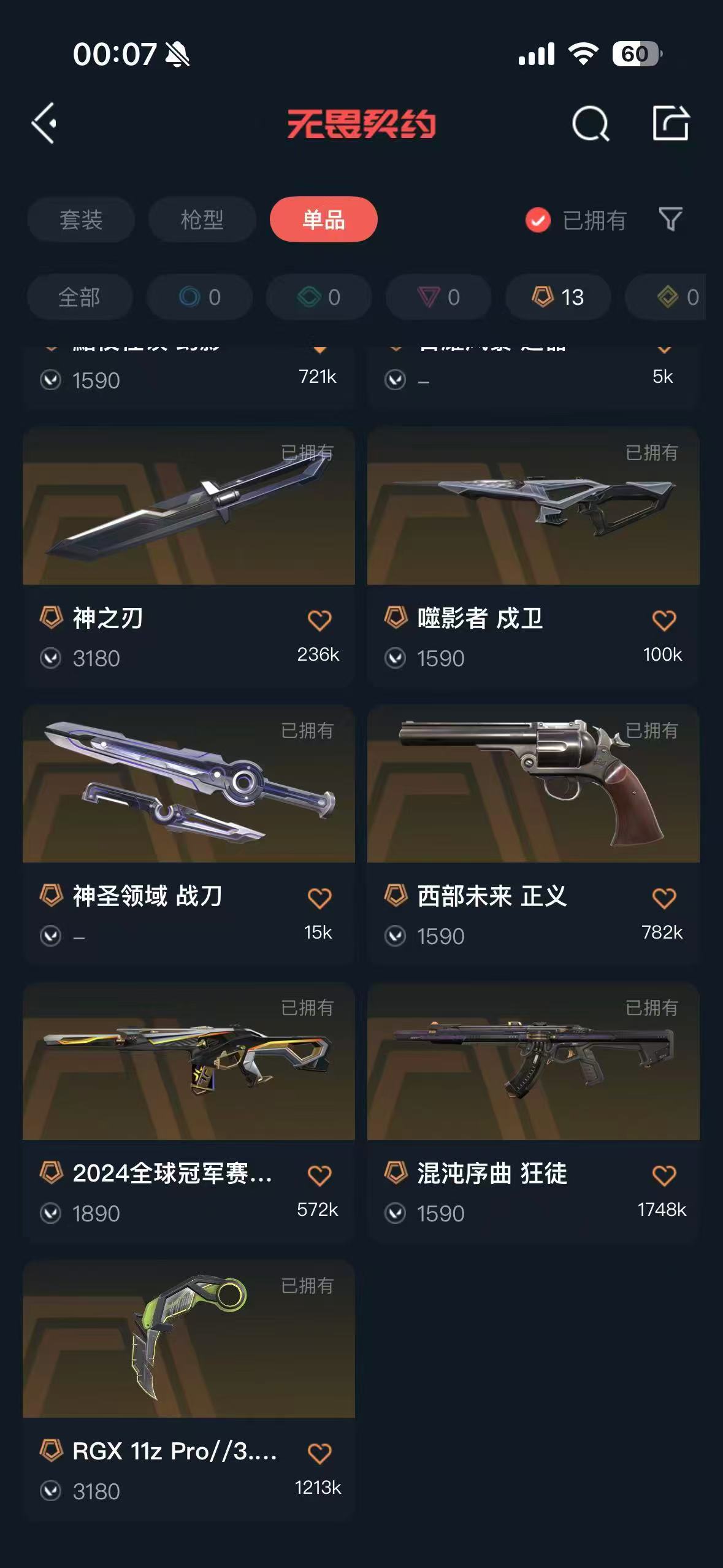 首页 > 租号大厅 > 无畏契约-wegame > wegame/wegame > 可排♥多刀皮爪刀蝴蝶刀♥2425赛季枪皮♥多狂徒幻影皮肤♥堕天遗武狙♥西部未来♥仓库价值三万多