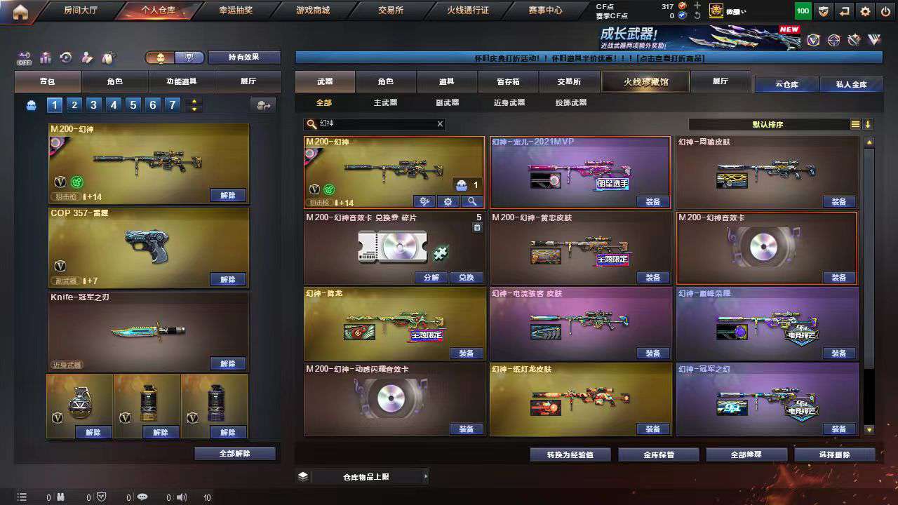 200V幻神8皮+幻神音效卡王者星神王者风神玄武G36-幻影白虎3皮+音效卡QBZ3皮+音效卡雷神(虎牙)12皮肤毁灭8皮全套冠军3冠军之刃7音卡