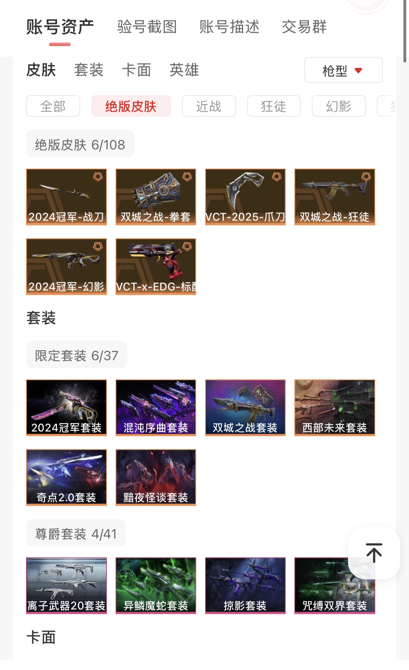 首页 > 租号大厅 > 无畏契约-wegame > wegame/wegame > 已备案禁止开挂❤️24W库24冠军双城套❤威龙黑波魔术火花影钩紫金VCT爪刀艾沃莉❤️多狂徒幻影大狙