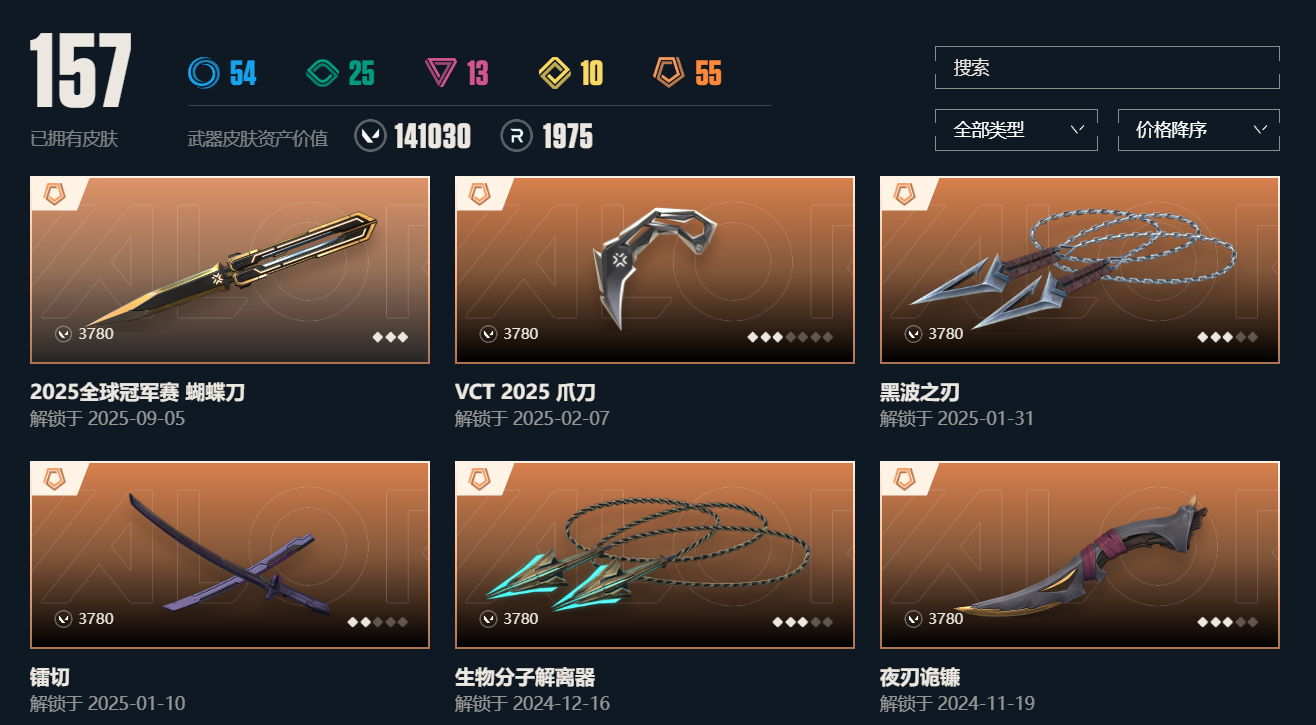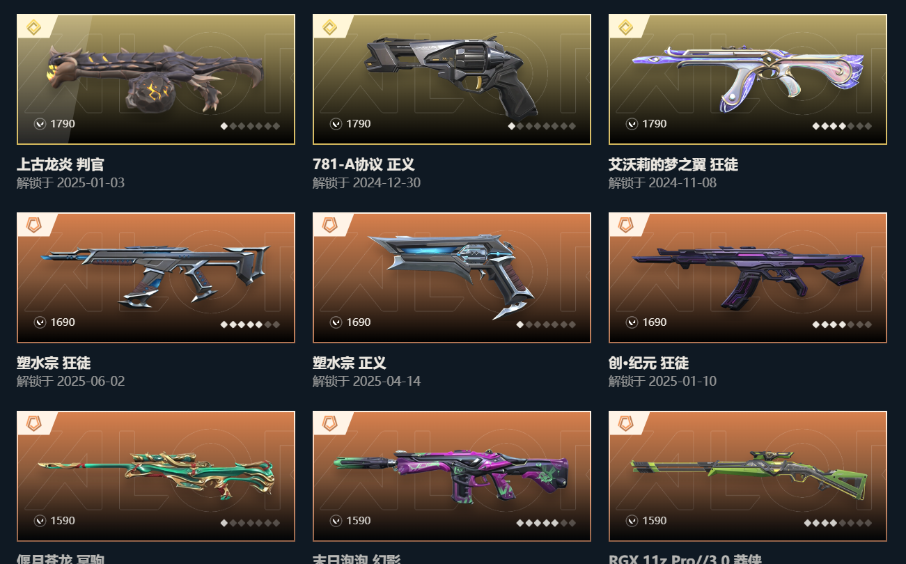 14W库存2225冠军西部上古龙炎套猫猫超时空显卡创纪元光荣塑水掠影20把狂徒电玩781幻影;西部未来 奥丁,黑波之刃,镭切,威龙之刃,VCT 2025 爪刀,上古龙炎 判官,盖亚的复仇 狂徒,