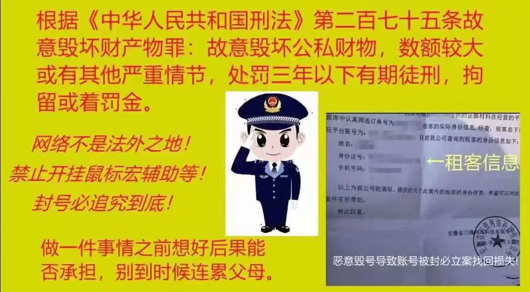 开启外挂 造成封号十年 必起诉! 平台协议上有相关说明!