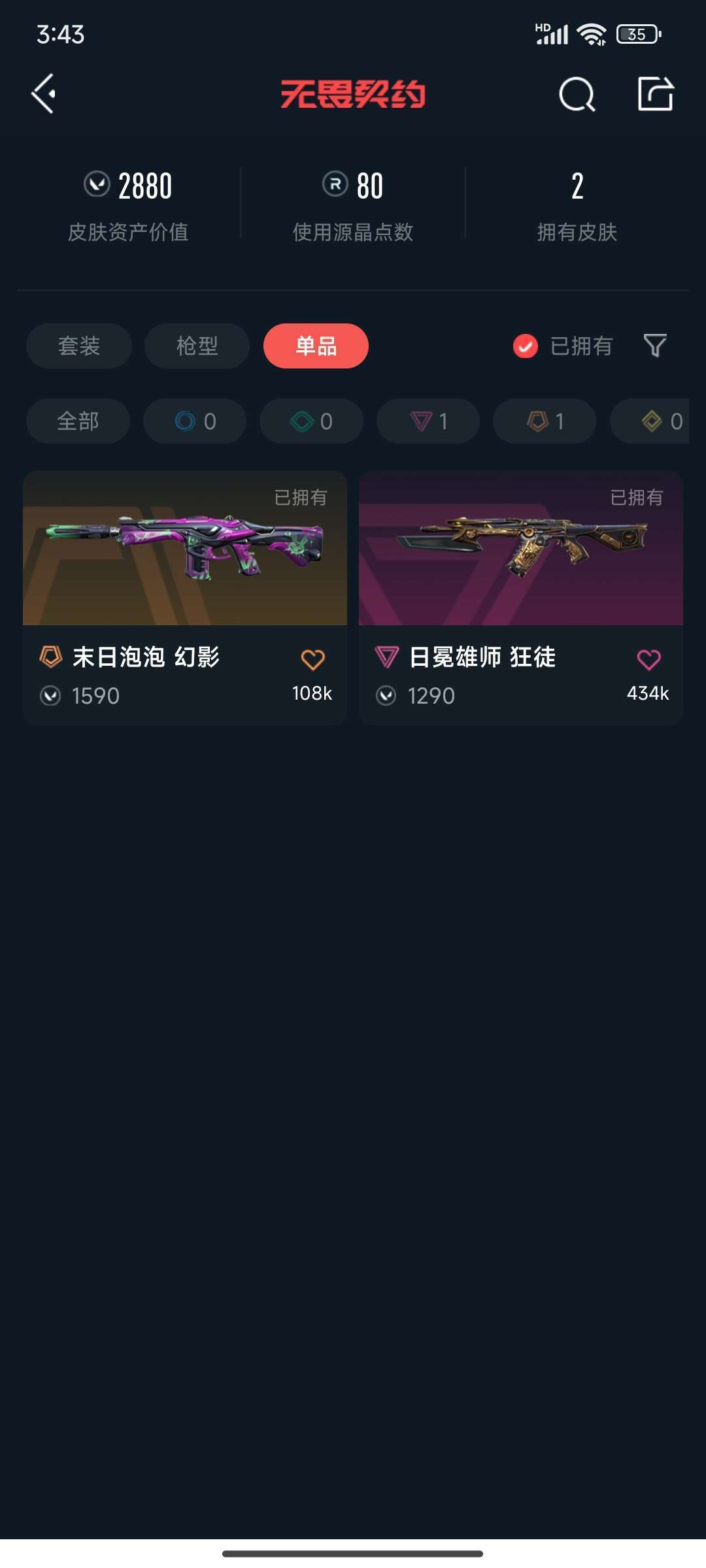 • 武器皮肤数量: 2